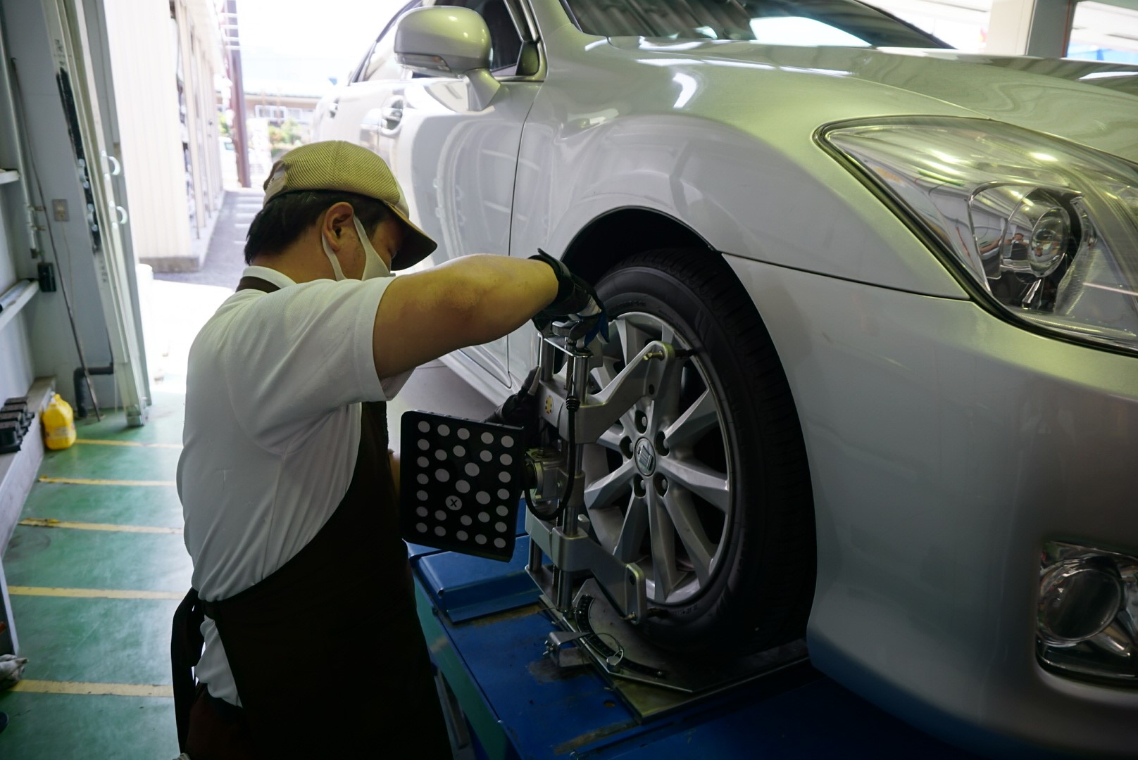 交換後の最後の仕上げはアライメント調整です!専用のテスターで現在の状況を把握します。