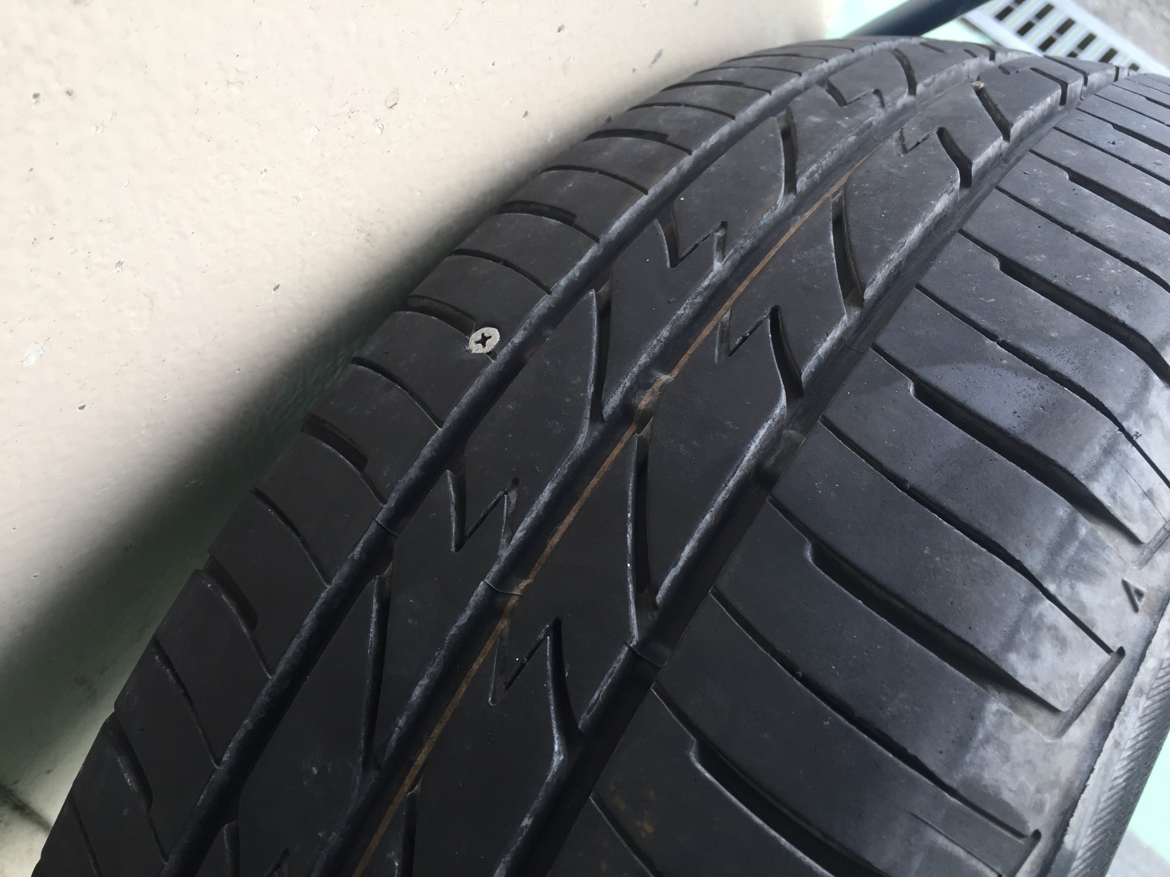↓ 今回原因となったタイヤです。この釘1本でタイヤ交換となってしまった事はとても残念ですね。