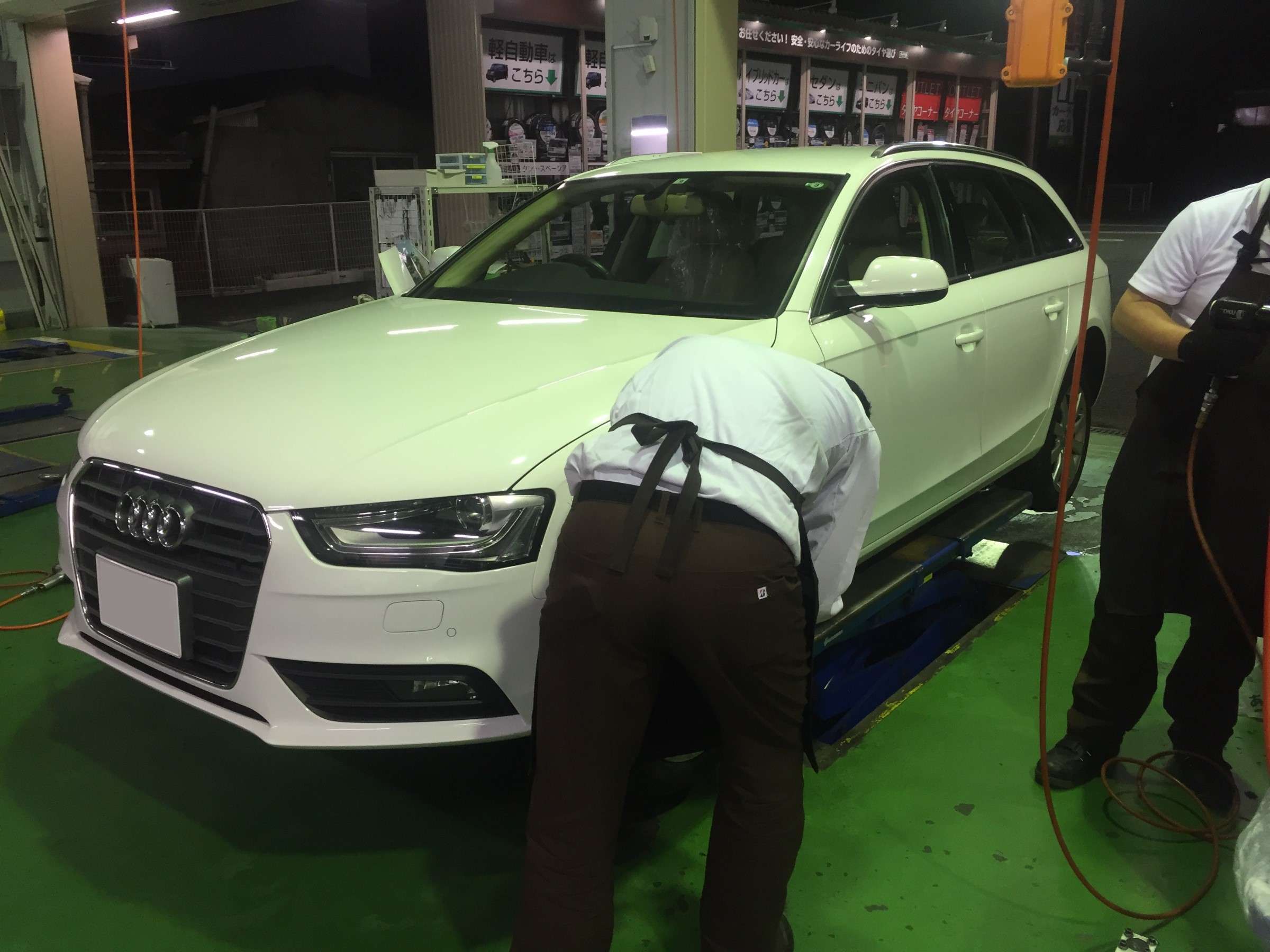 車はアウディ。走行中に空気が抜けぺしゃんこ状態での来店でした。