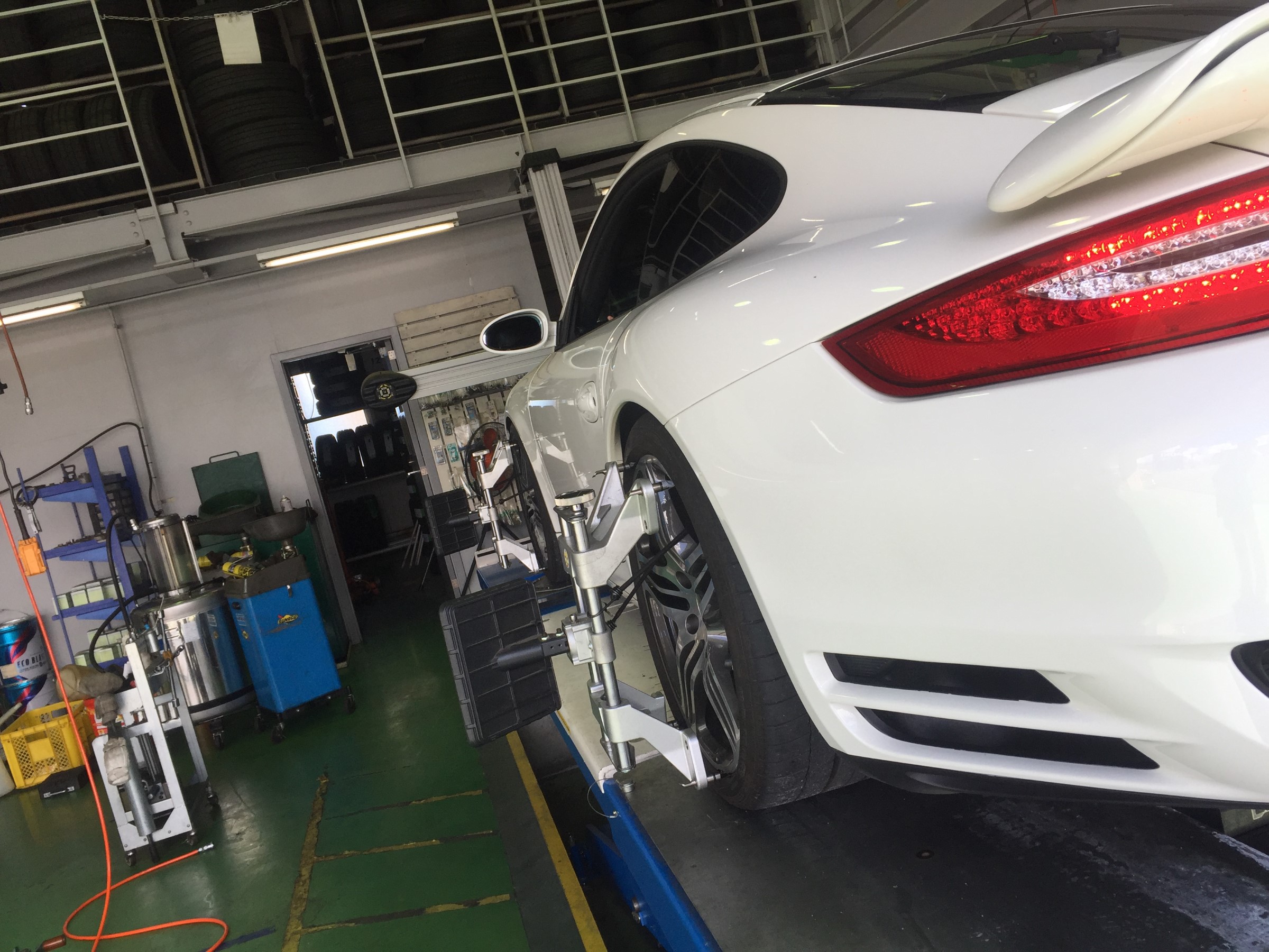 本日はポルシェのお客様よりアライメント調整のご依頼をいただきました!