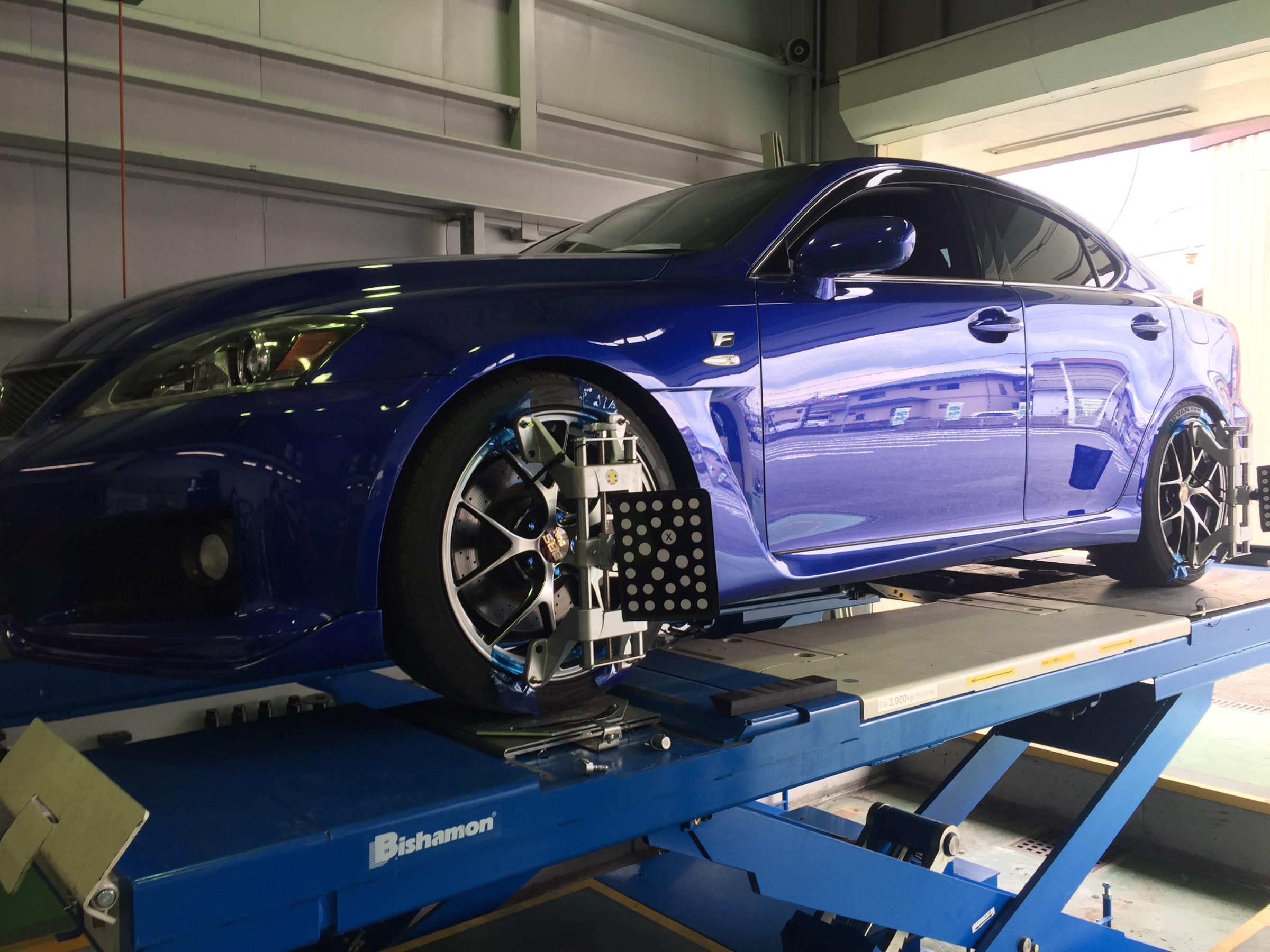 とくにこのIS-Fのような高性能な車はアライメントが適正で無いと性能を発揮できないばかりか、安全性にも
