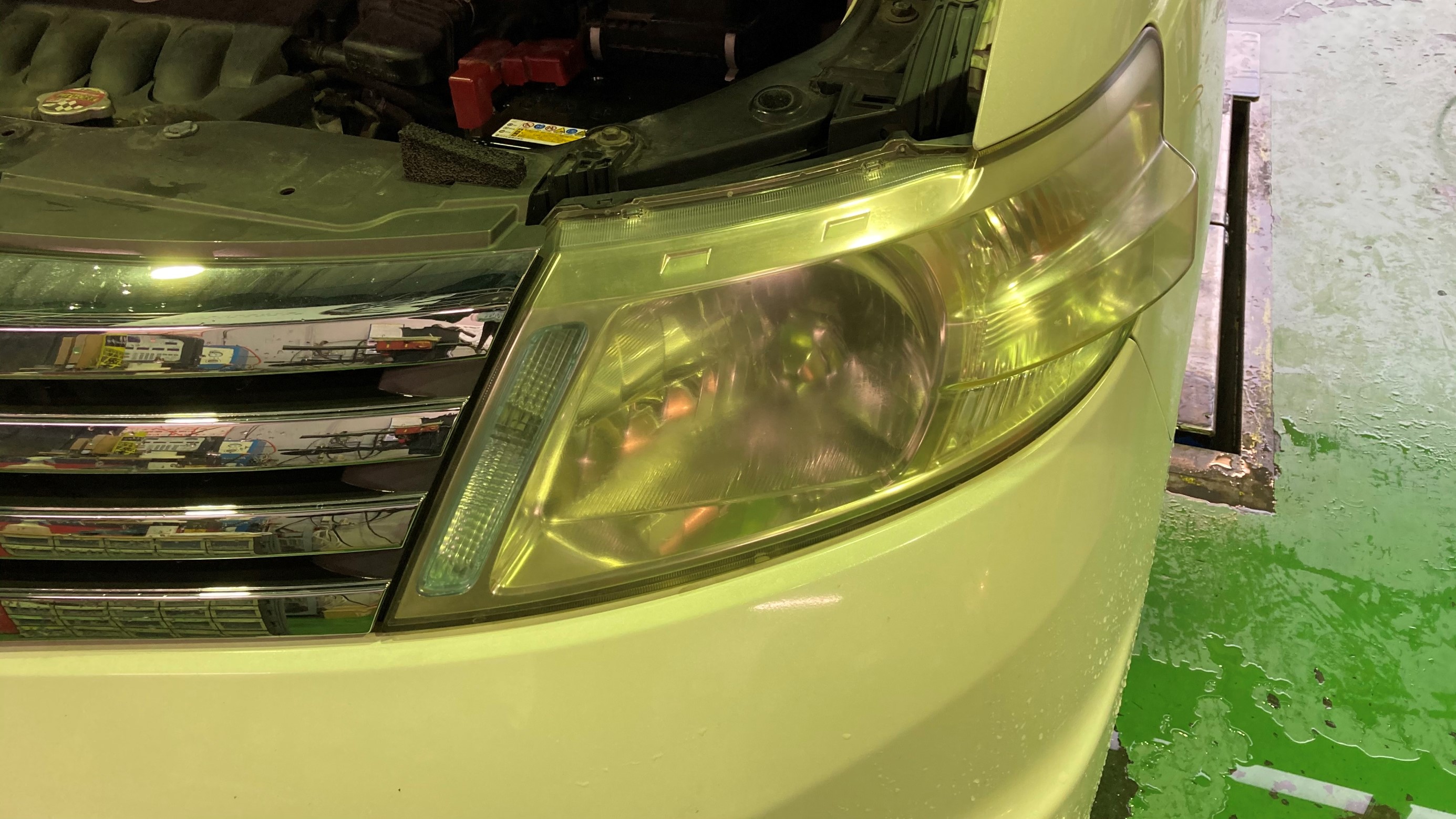 施工前の画像です。経年劣化によるレンズがくすんでいますね。