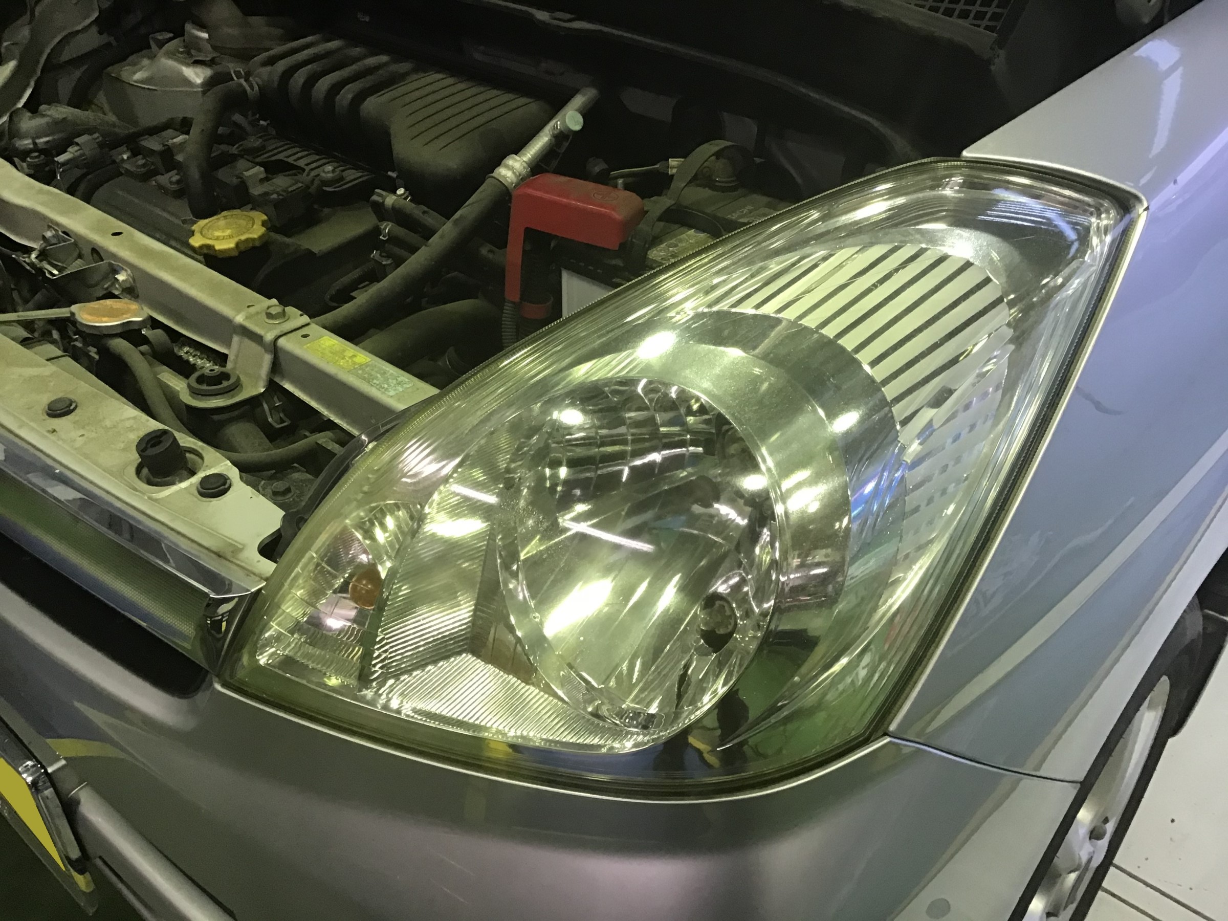 ↓ 施工前(少し黄色く変色しているのが分かります。ヘッドライトも暗いとの事)