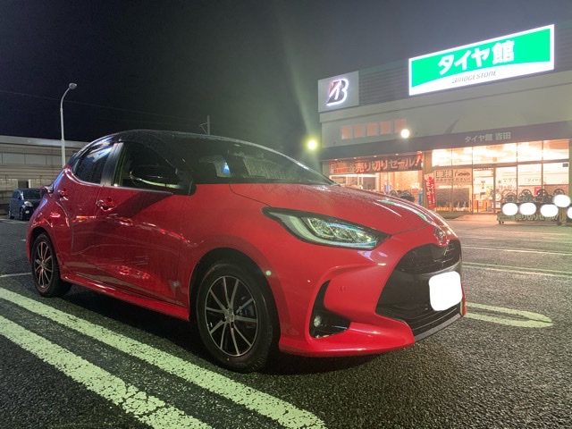 本日ヤリス入庫! ポスト 2020年11月20日 本日、トヨタヤリスが入庫致しました。 まだ1000kmホドしか走っていないピカピカのヤリスです。 ↓ とにかくカラーが綺麗! 新車と言うことで、新品の冬タイヤセットを装着! ↓ホイールはバルミナのB10を装着しました。 雨の中のご来店ありがとうございます。 またのお越しをお待ちしております。 担当:三井