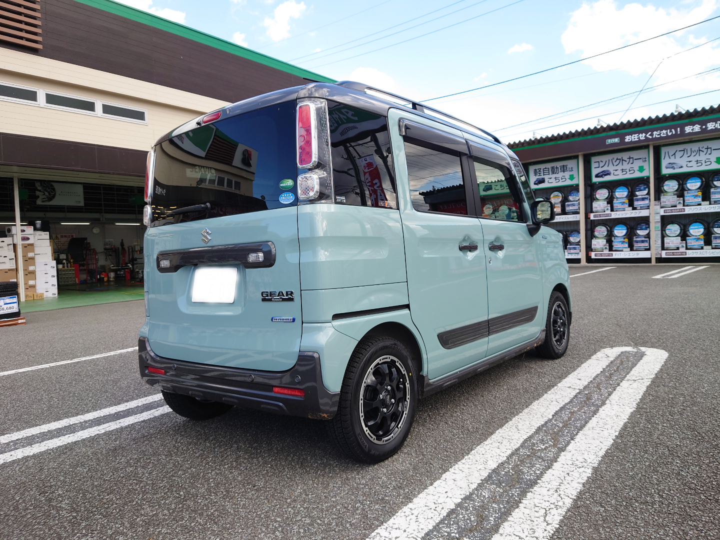 オーナー様も普通のホイールでは物足りないとの事で、スペーシアギアに似合うタフな感じのホイールを一緒に選ばせていただきました( ॑꒳ ॑ )