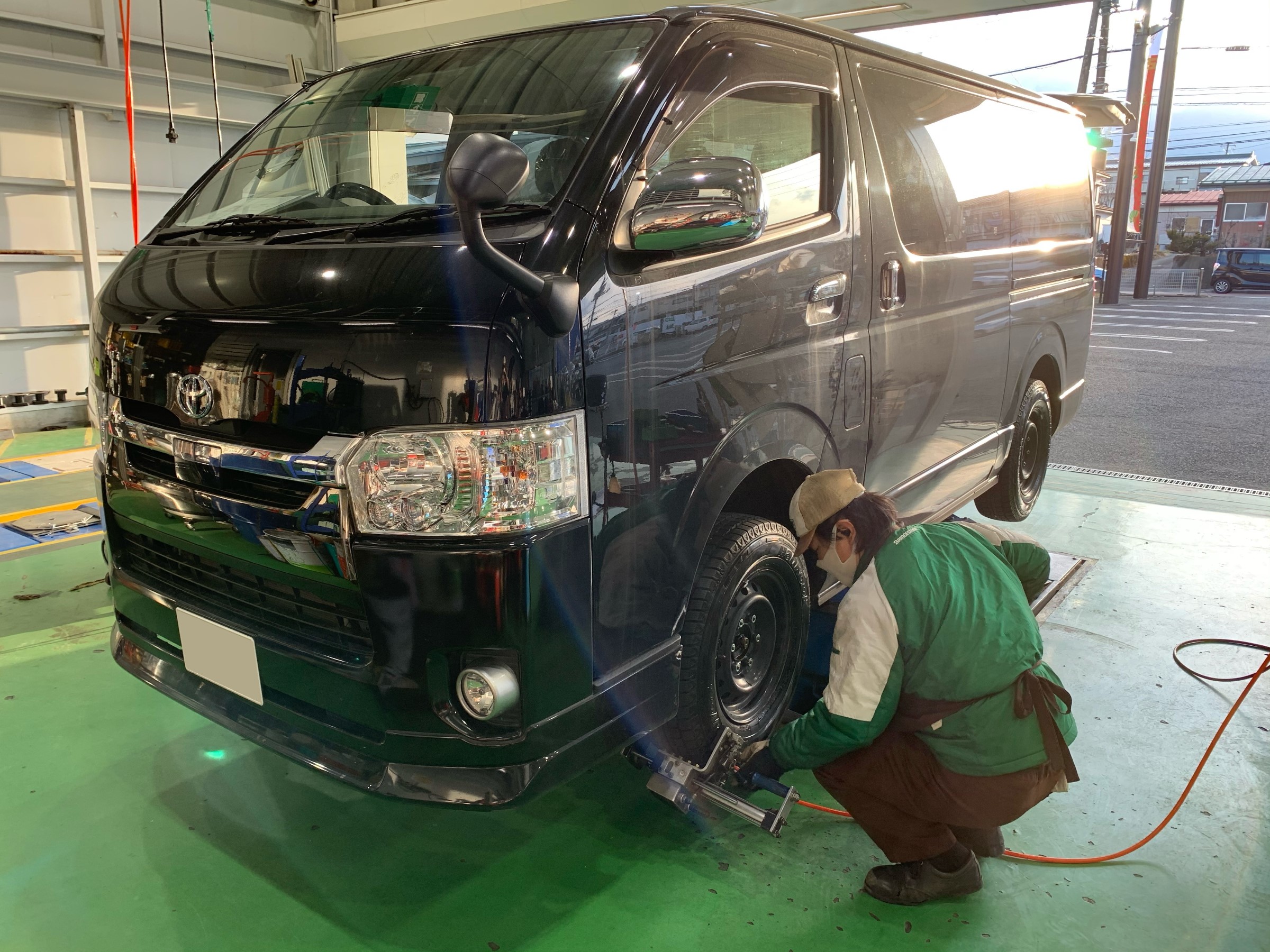 ハイエース入庫!組替と・・・。 ポスト 2021年1月14日 本日はハイエースが入庫です! タイヤを8本組替した後、冬タイヤを装着しました。 ↓ 黒くキレイな状態のハイエースです。 更に一緒にオイル交換もしてくださいました! この時期履き替えはもちろん大事ですが、一緒に車のメンテナンス等もできたら 一石二鳥ですよね! 是非当店をご利用ください。 本日もご来店ありがとうございました。 担当:三井
