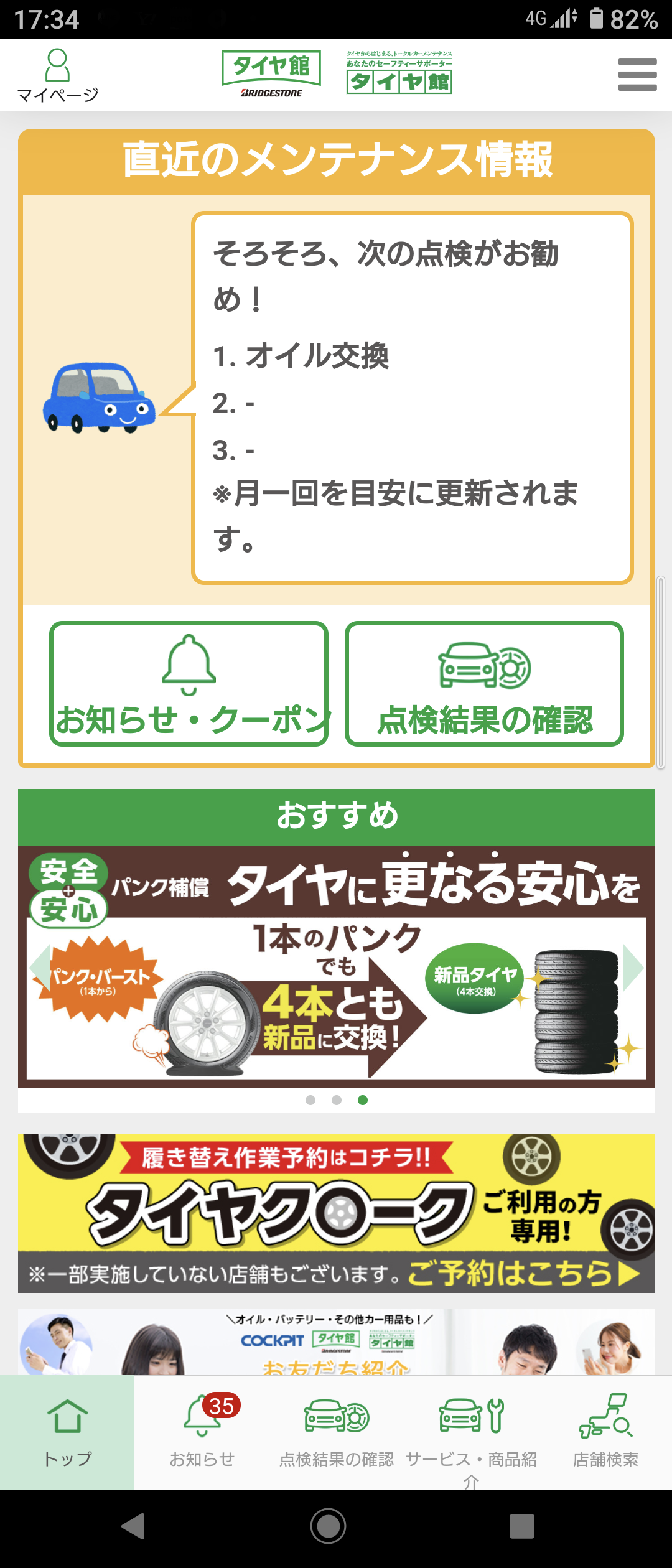 愛車のメンテナンスは是非タイヤ館のメンテナンスパックで♪