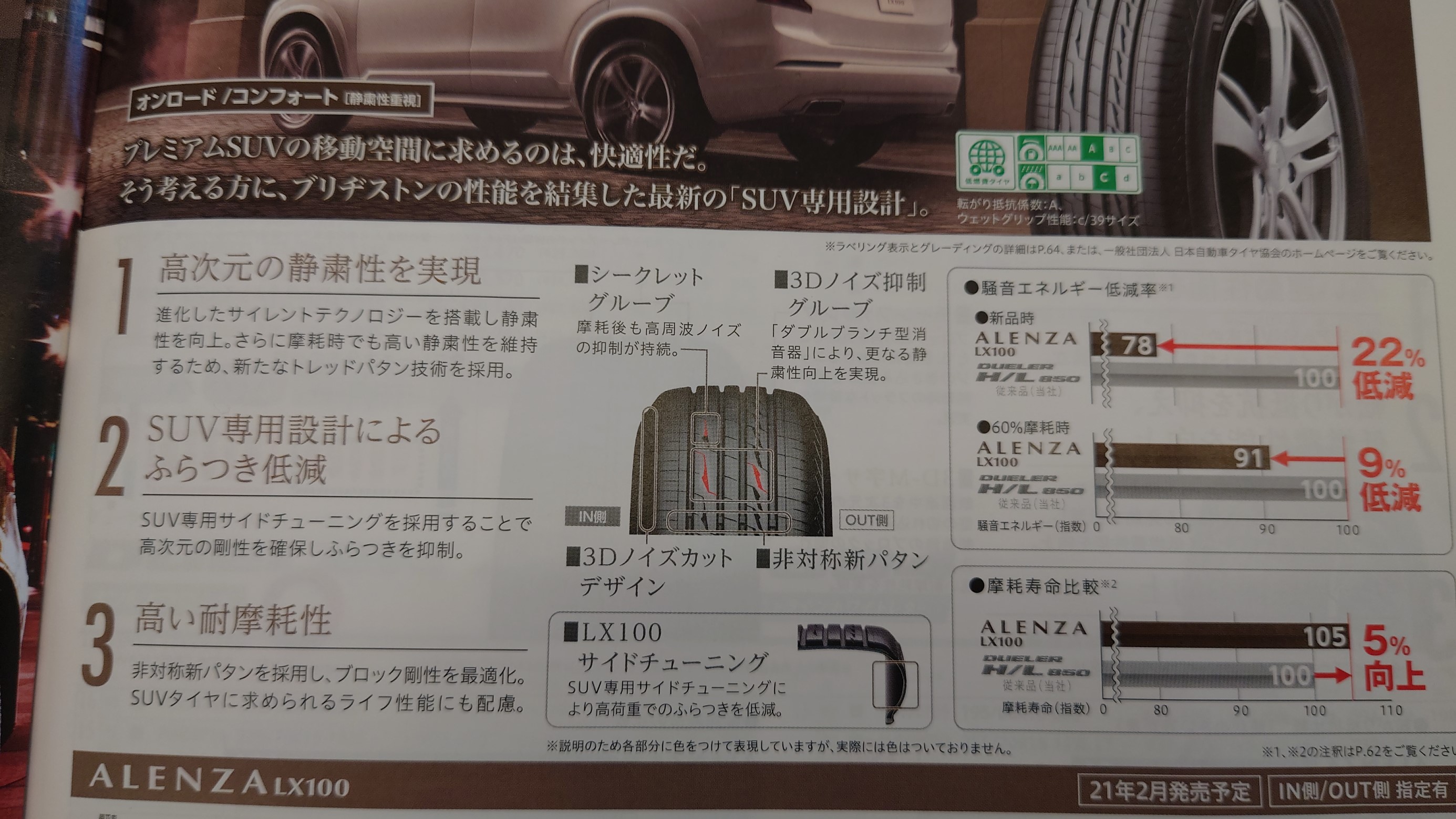 元々静かなタイヤで好評いただいていたデューラーH/L850と比較すると22%も静かになっていますので、かなり静粛性は高いです(^^)