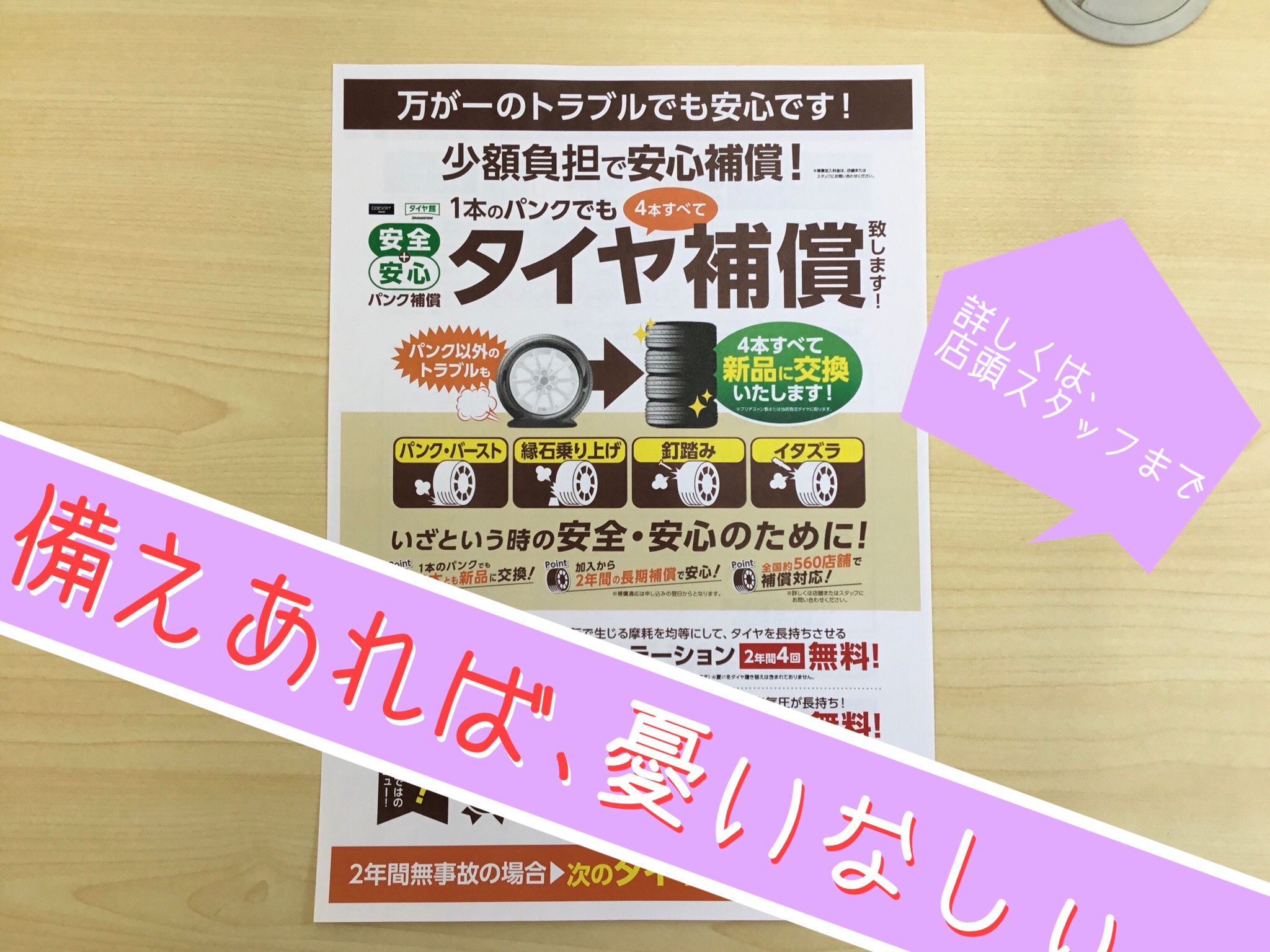 タイヤを新しくしたら、パンク補償がオススメですよ!