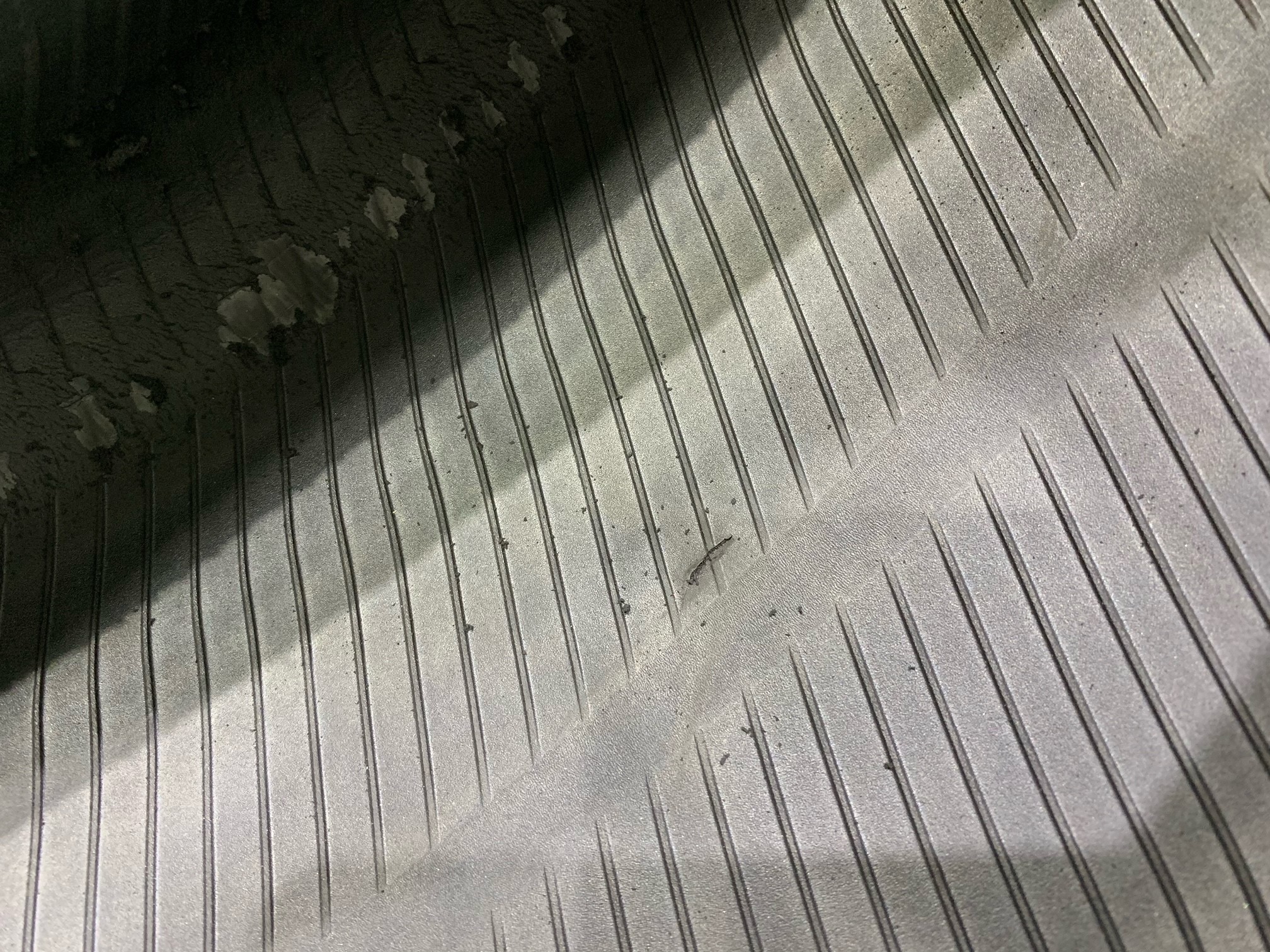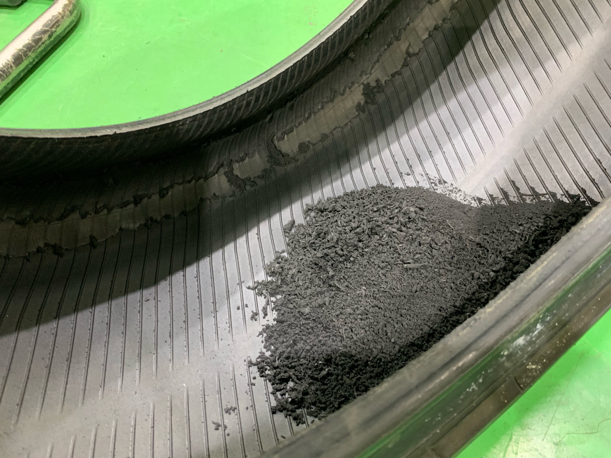 ↓ タイヤ内部は凄まじい事になってますね。ゴムが削れてパン粉みたいになってます。