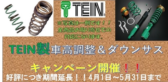 TEIN製車高調&ダウンサスキャンペーン、好評につき期間延長決定!!