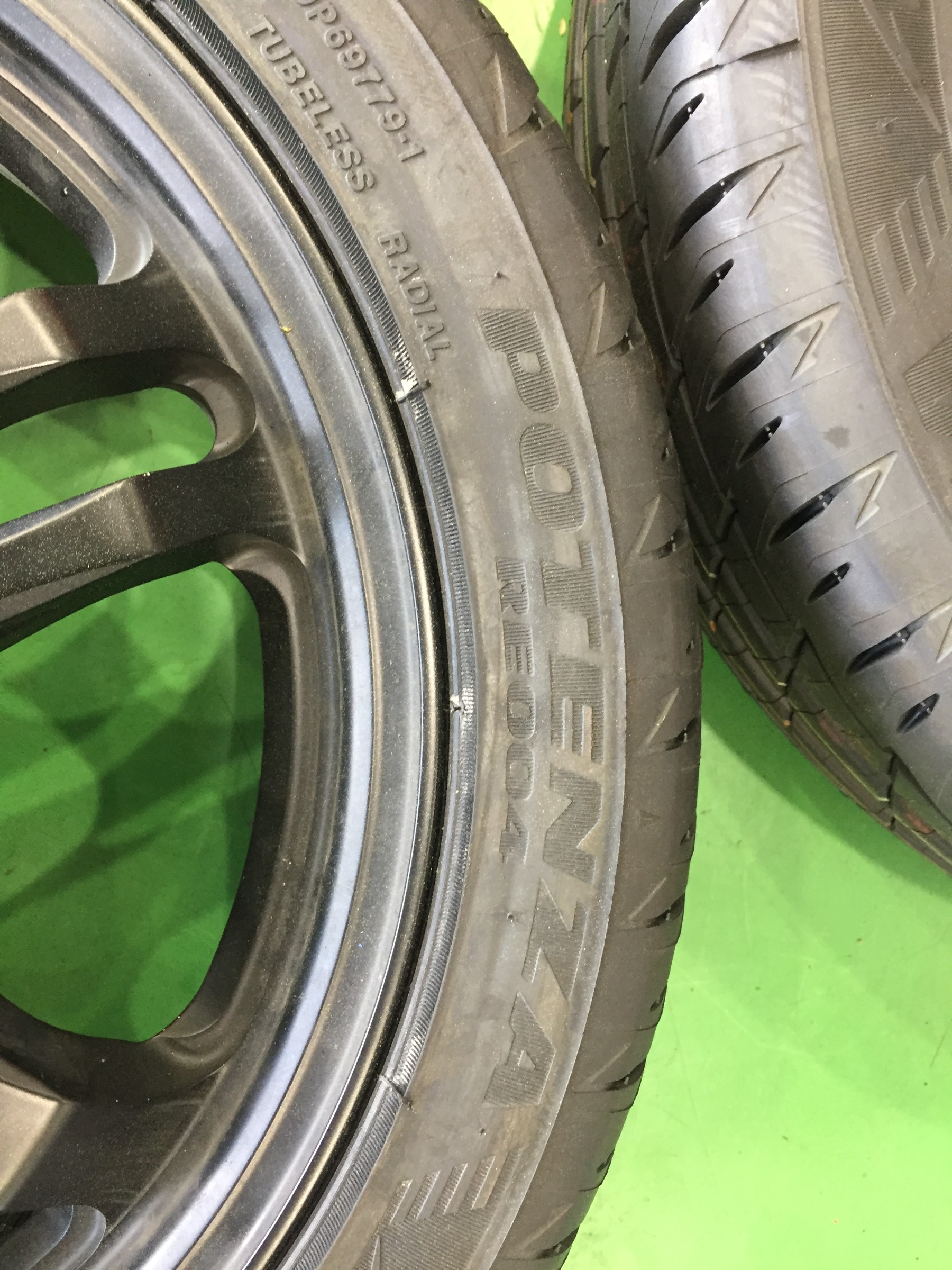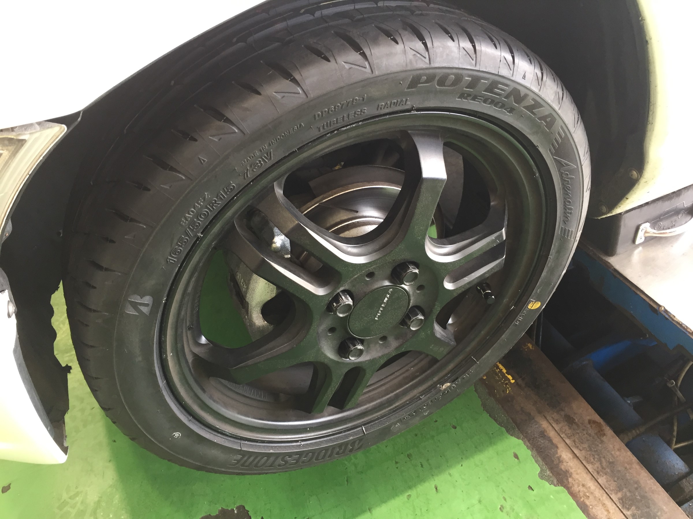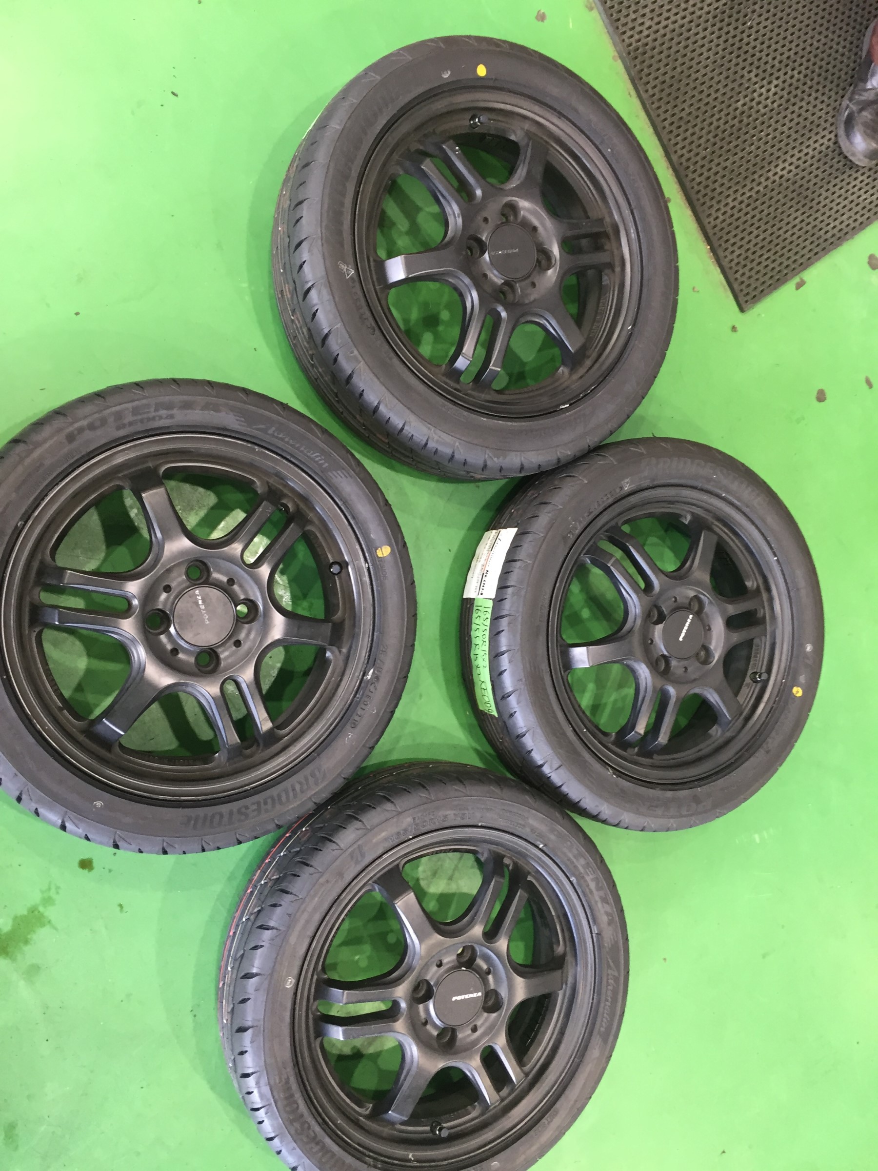 今回はお客様お持ち込みのホイールにポテンザRE004アドレナリンの15インチを取り付けます(^^)
