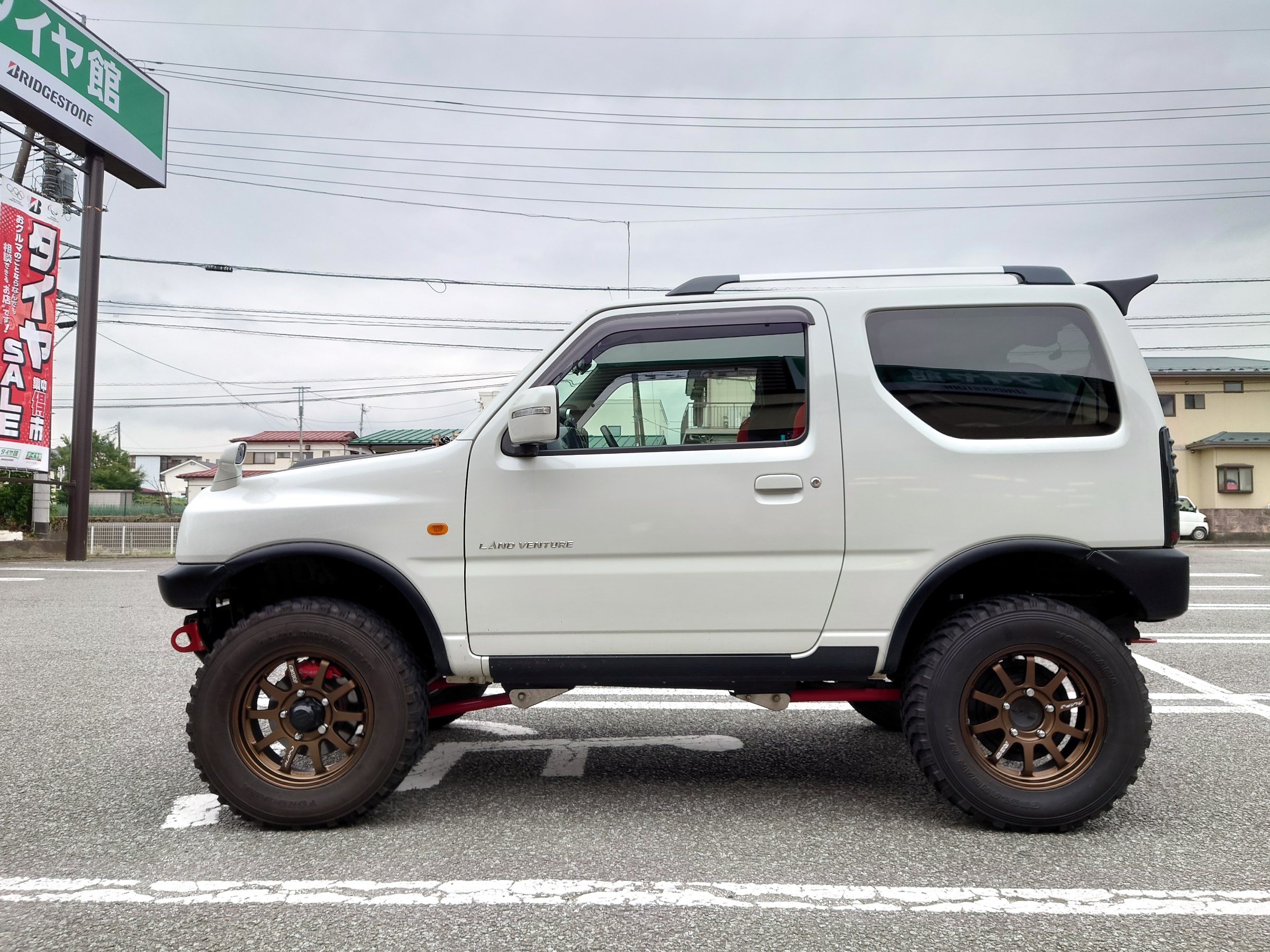 リフトアップされたジムニーにピッタリですね(^^♪タイヤ館では、各メーカーホイール取り扱っています。