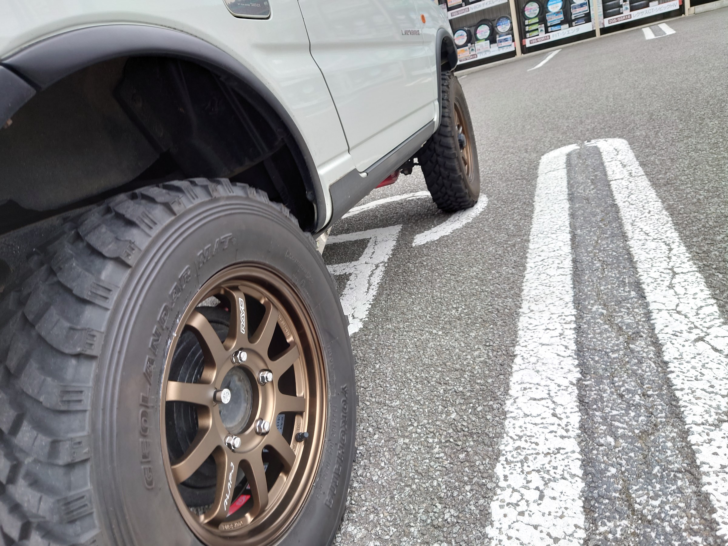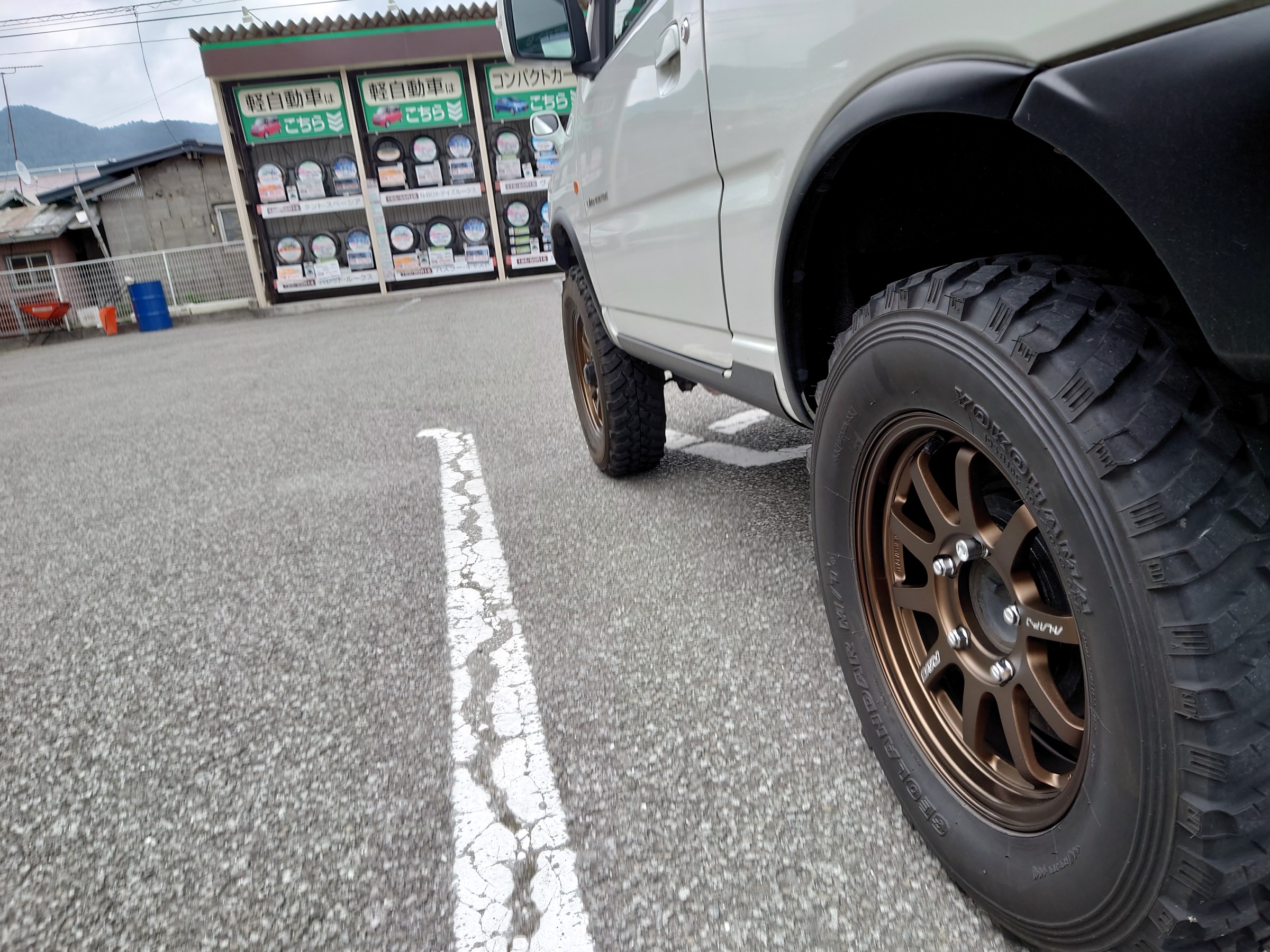 こちらのホイール、当店刑部スタッフの通勤車、SJ10にも付けているのと同じモデルです(/・ω・)/