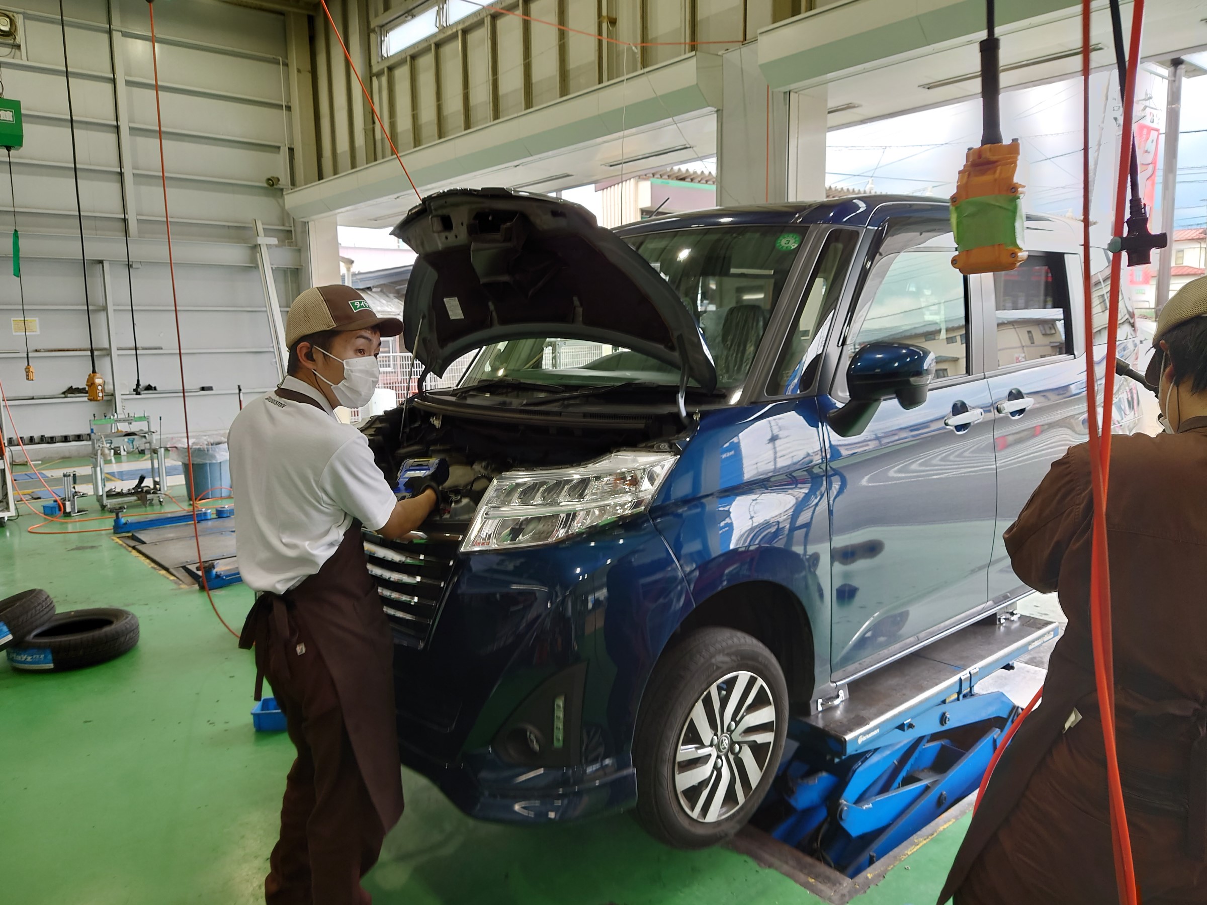 入庫し、作業を始めますが、タイヤ館では入庫したお車に無料の安全点検を行い、タイヤ以外にも何か交換等が必要な項目が無いかしっかりチェックさせていただいております!(^^)!