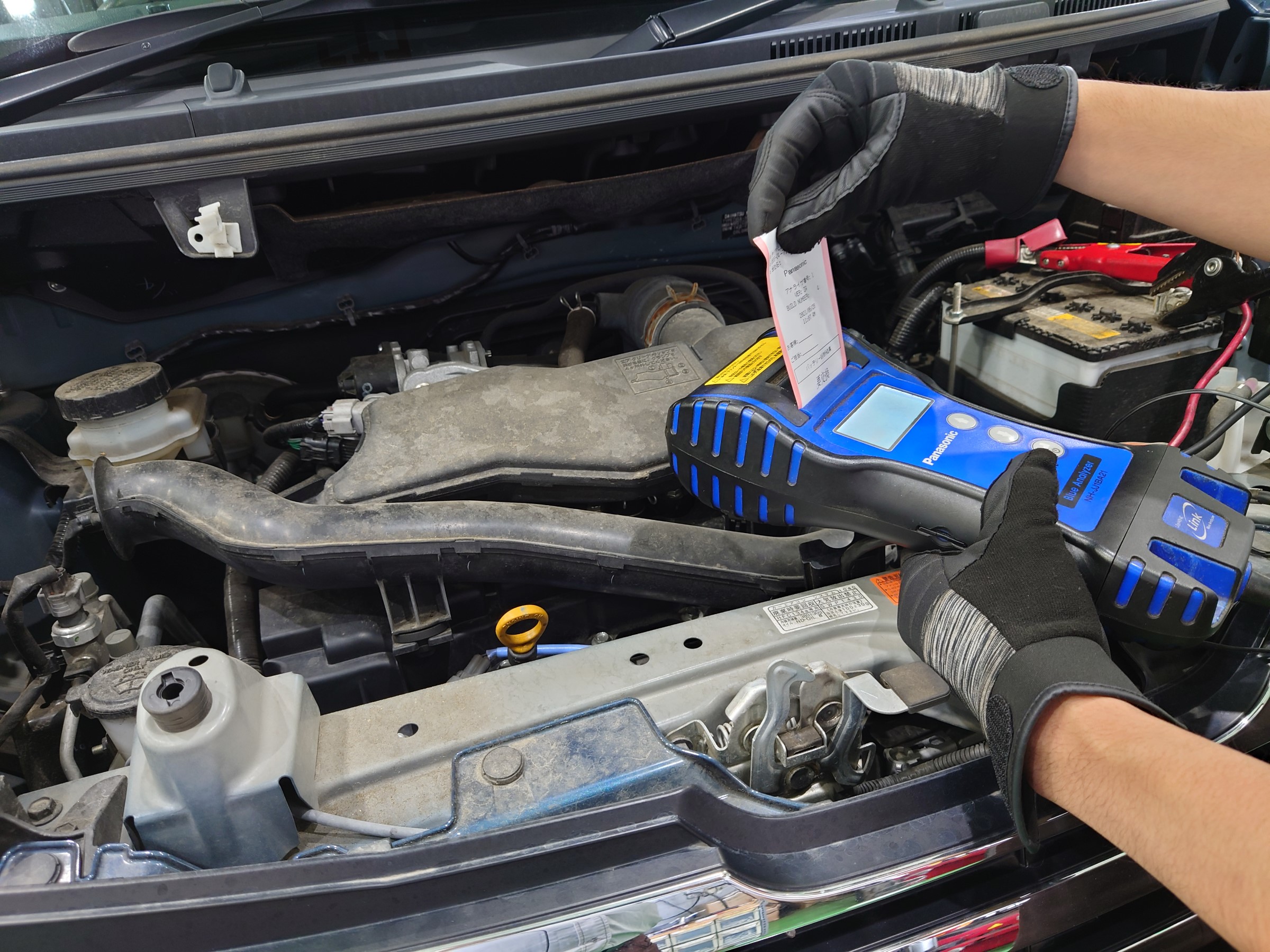 写真に写っているのはバッテリーテスターで、お車のバッテリーの健康状態をすぐに把握する事が出来ますよ!(^^)!