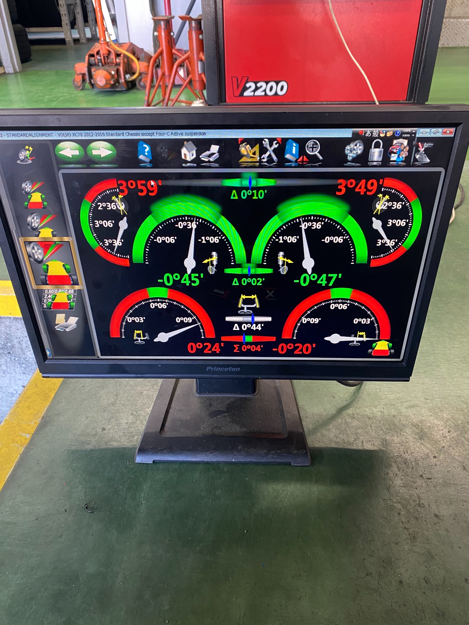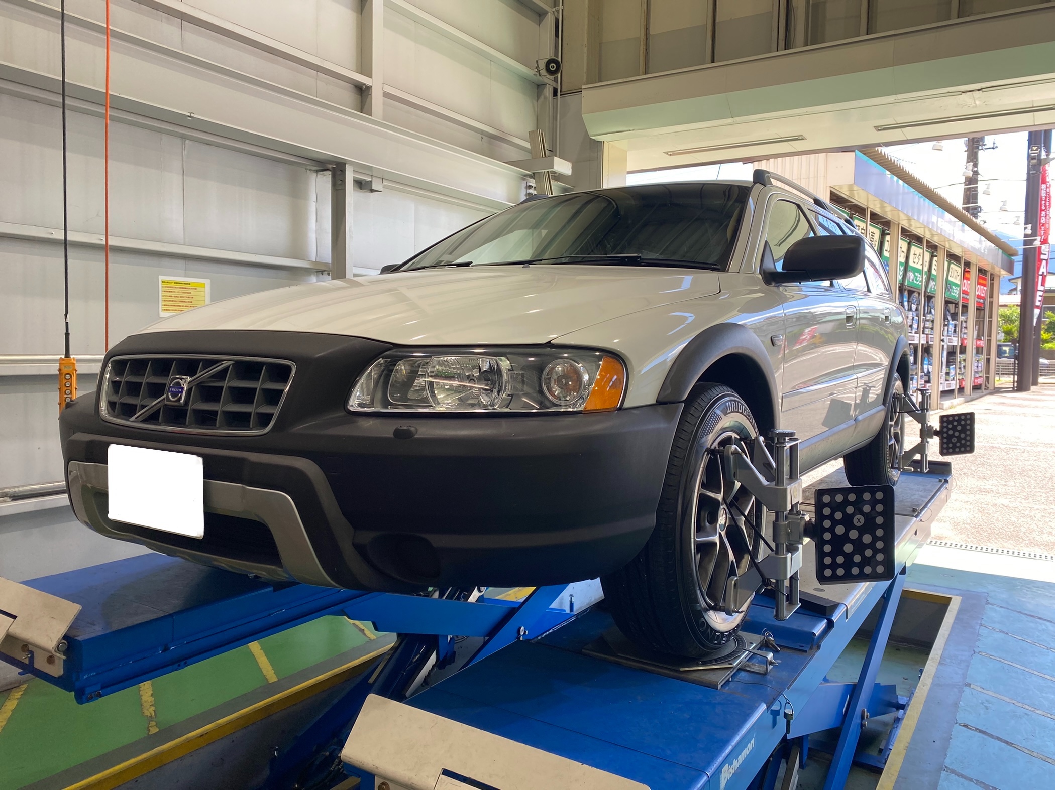 本日は、タイヤ交換でご入庫頂いたボルボのアライメント調整を実施しました。