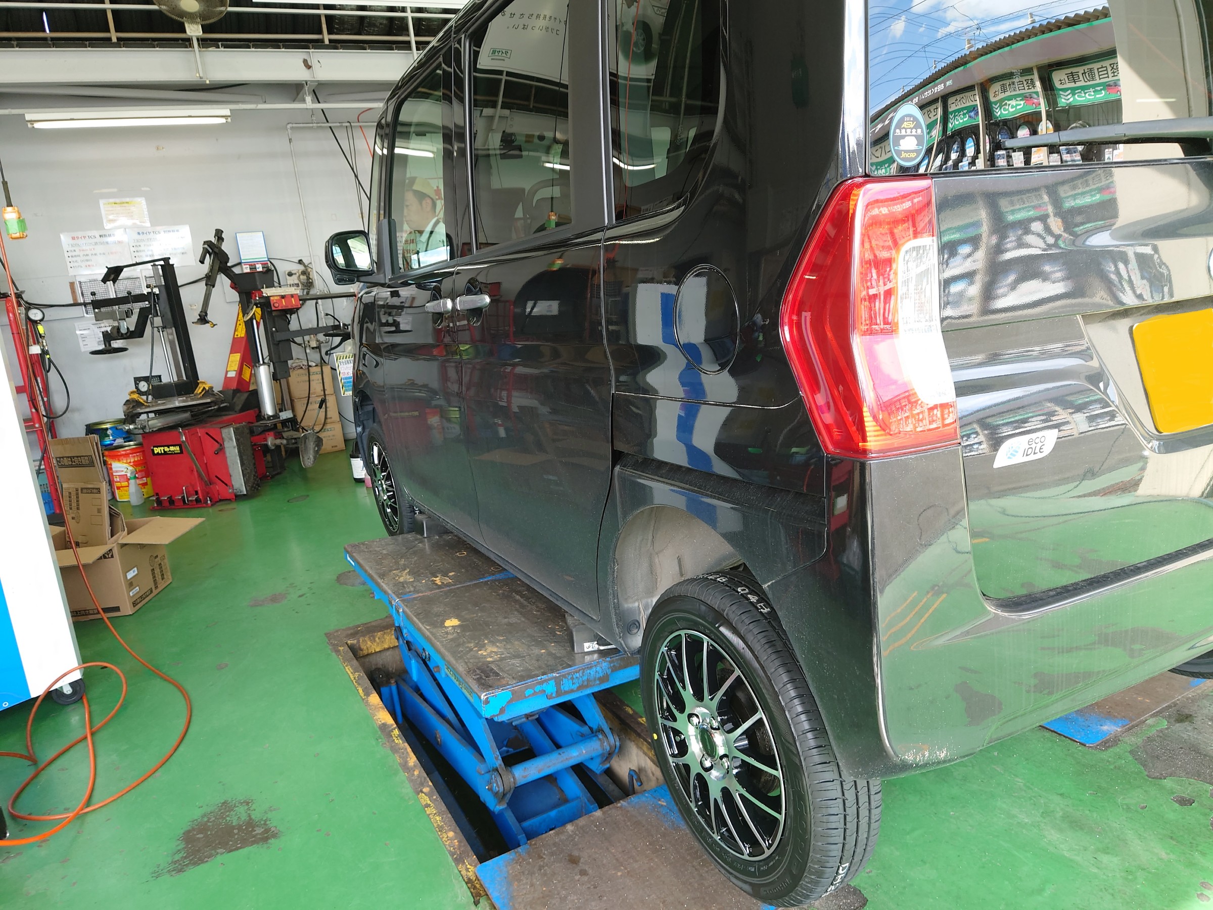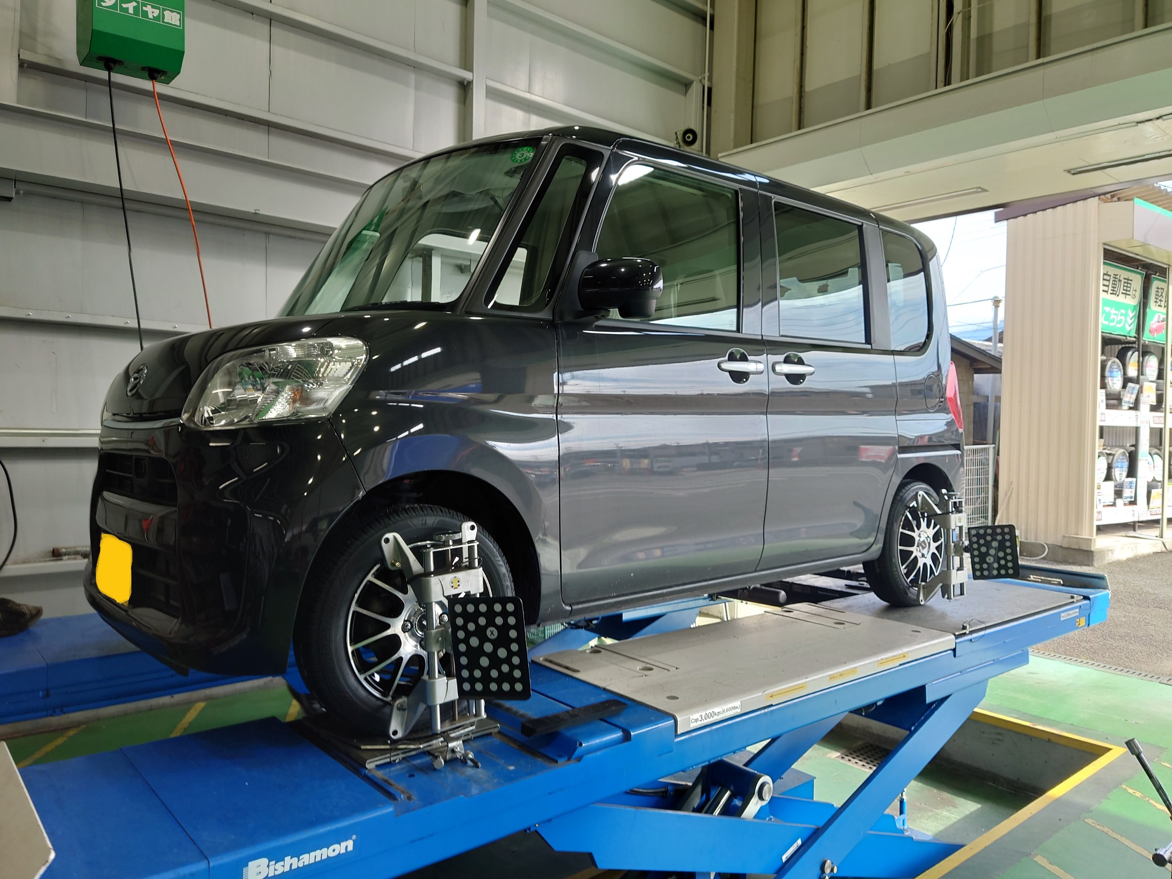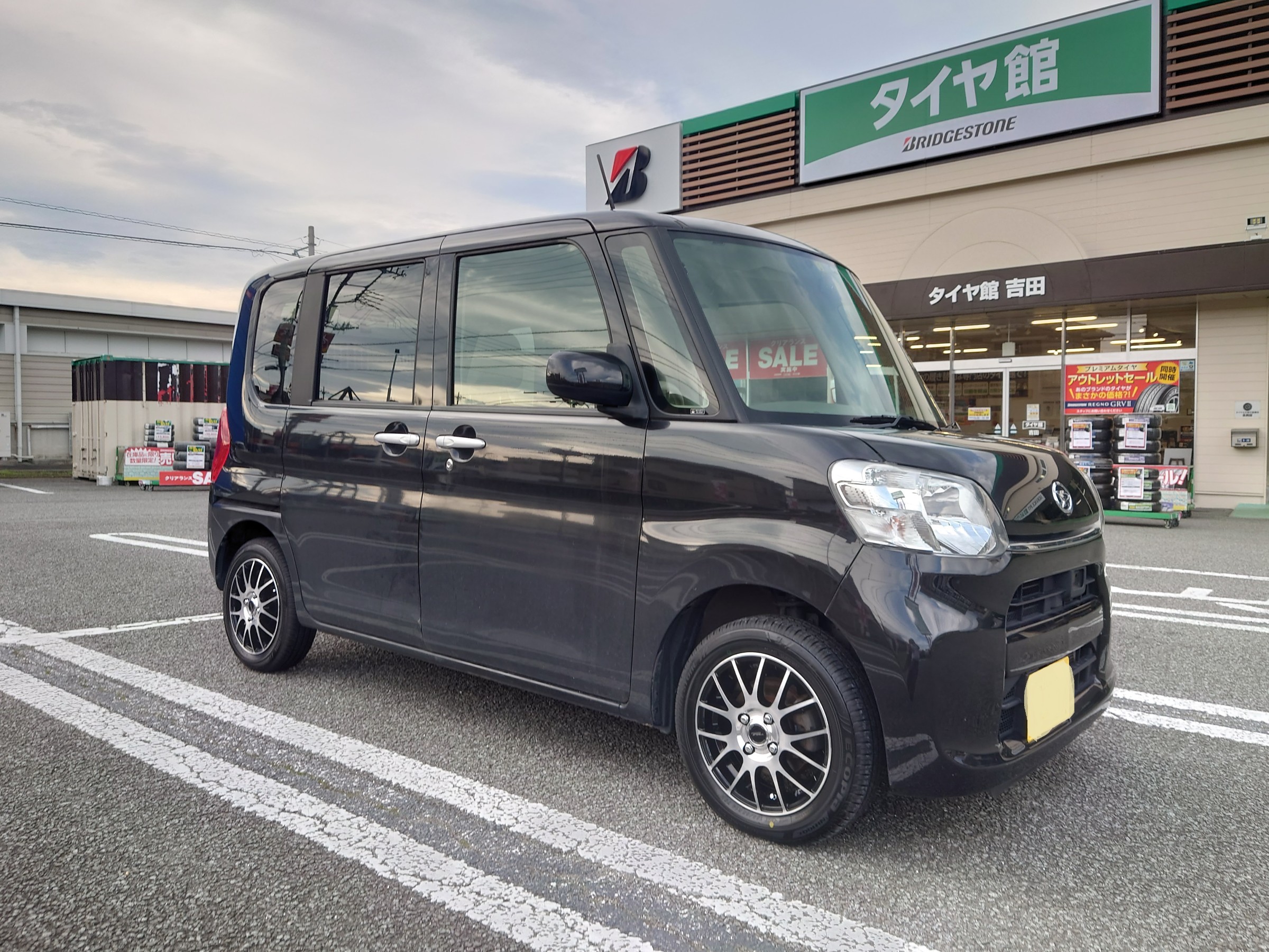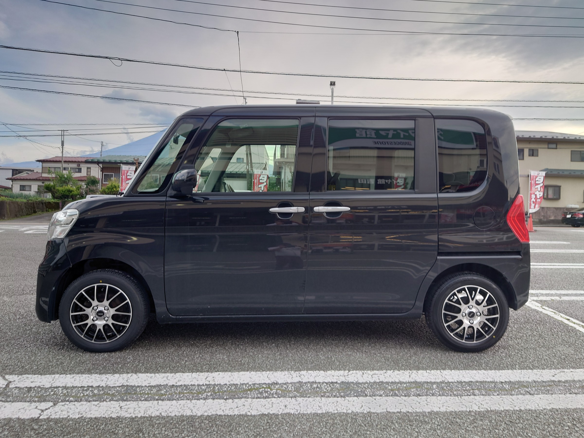 本日は、タントにお乗りのお客様より、新しいタイヤとホイールのセットをお買い上げいただきましたのでご紹介します(^^)/