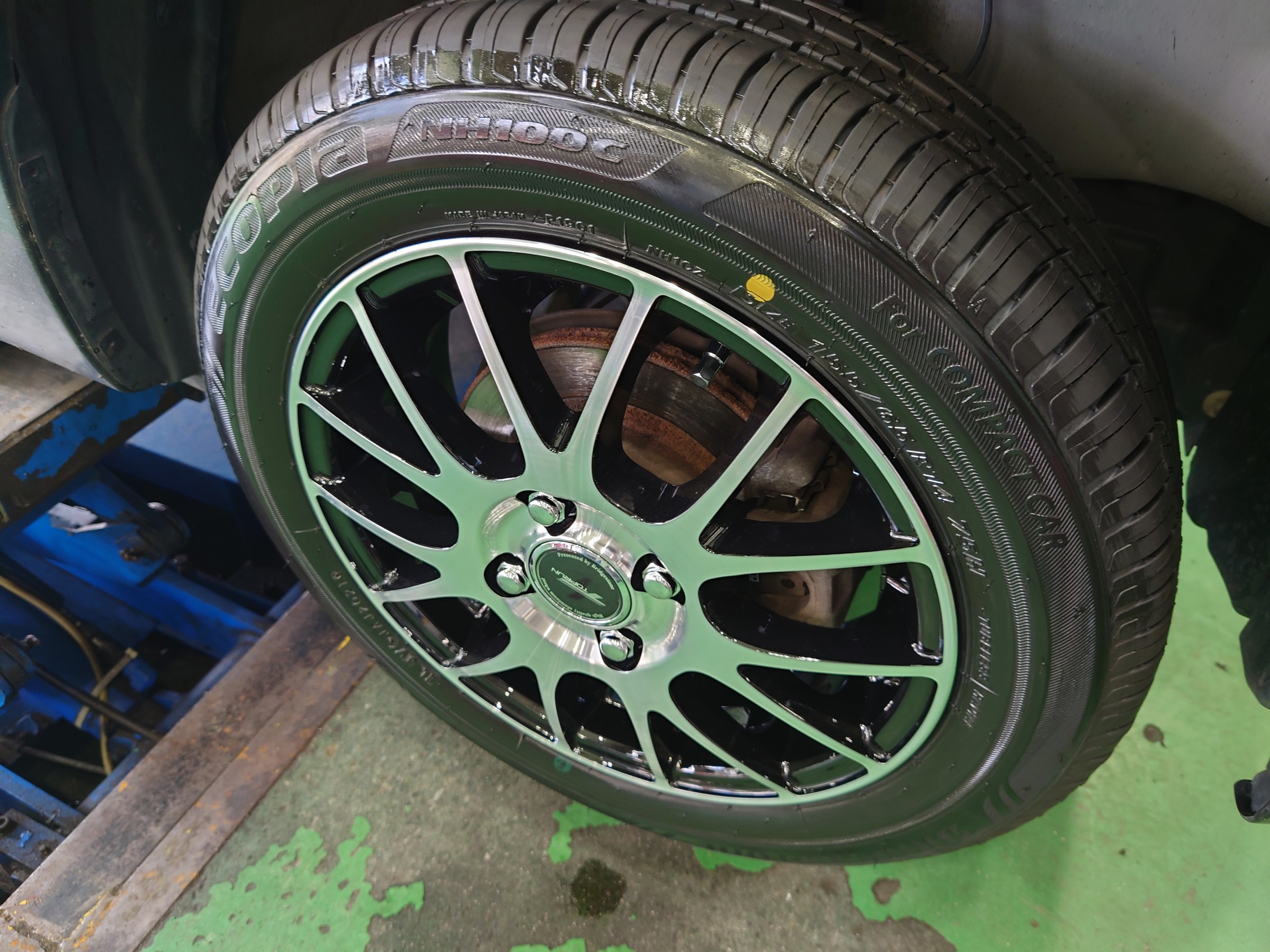 長持ちするタイヤが欲しいとのご要望がありましたので、今回チョイスしたタイヤはエコピアのNH100C、ホイールも一緒に欲しいとの事でしたので、トップランM7のブラック/シルバーのカラーを選択(^^)