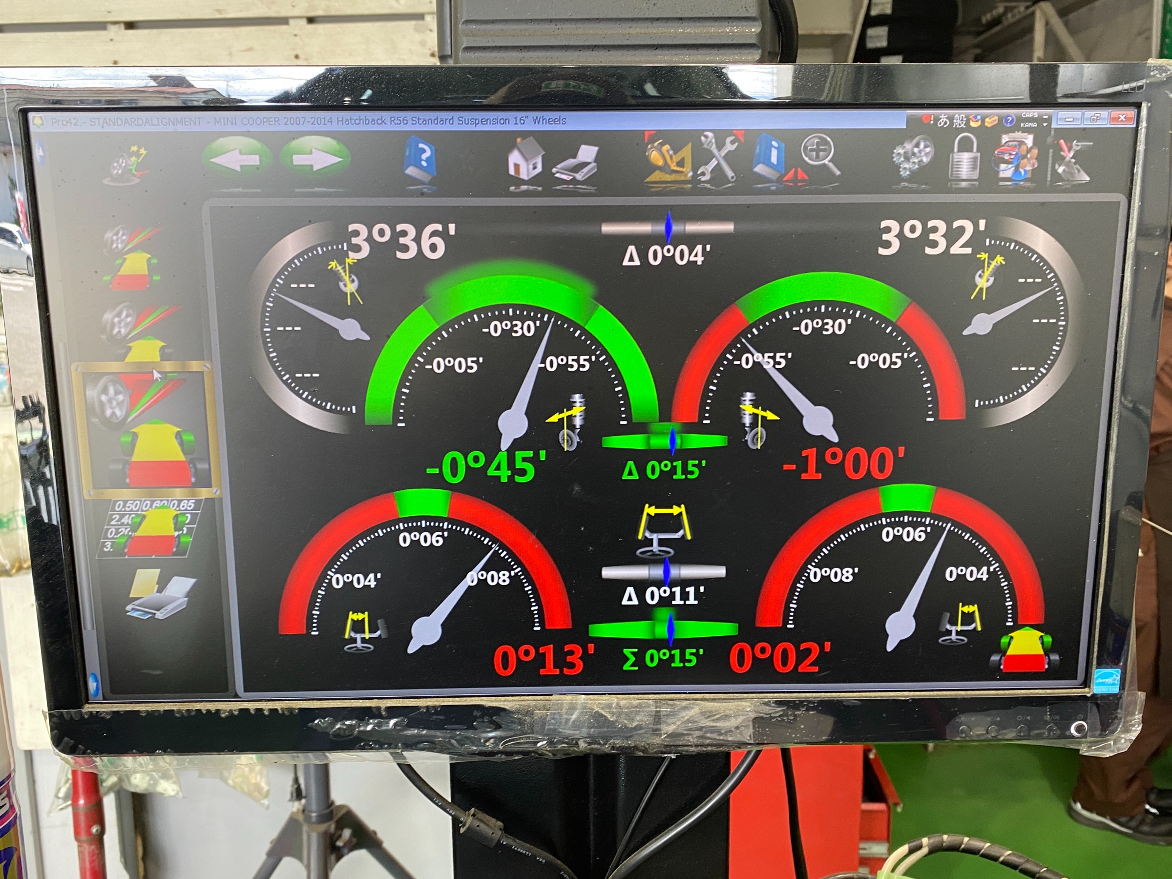 本日は、MINIクロスオーバーのアライメント調整を実施しました。