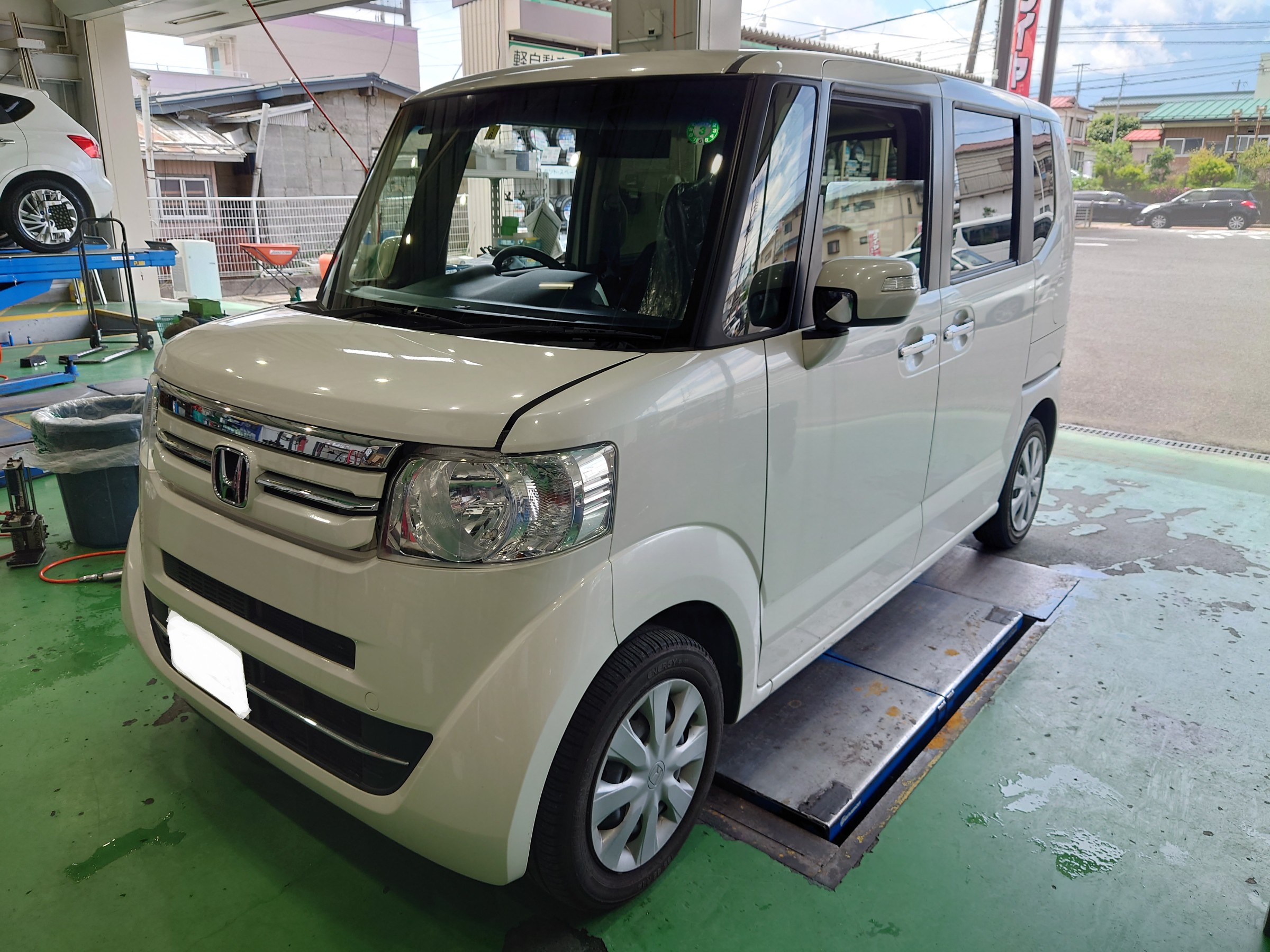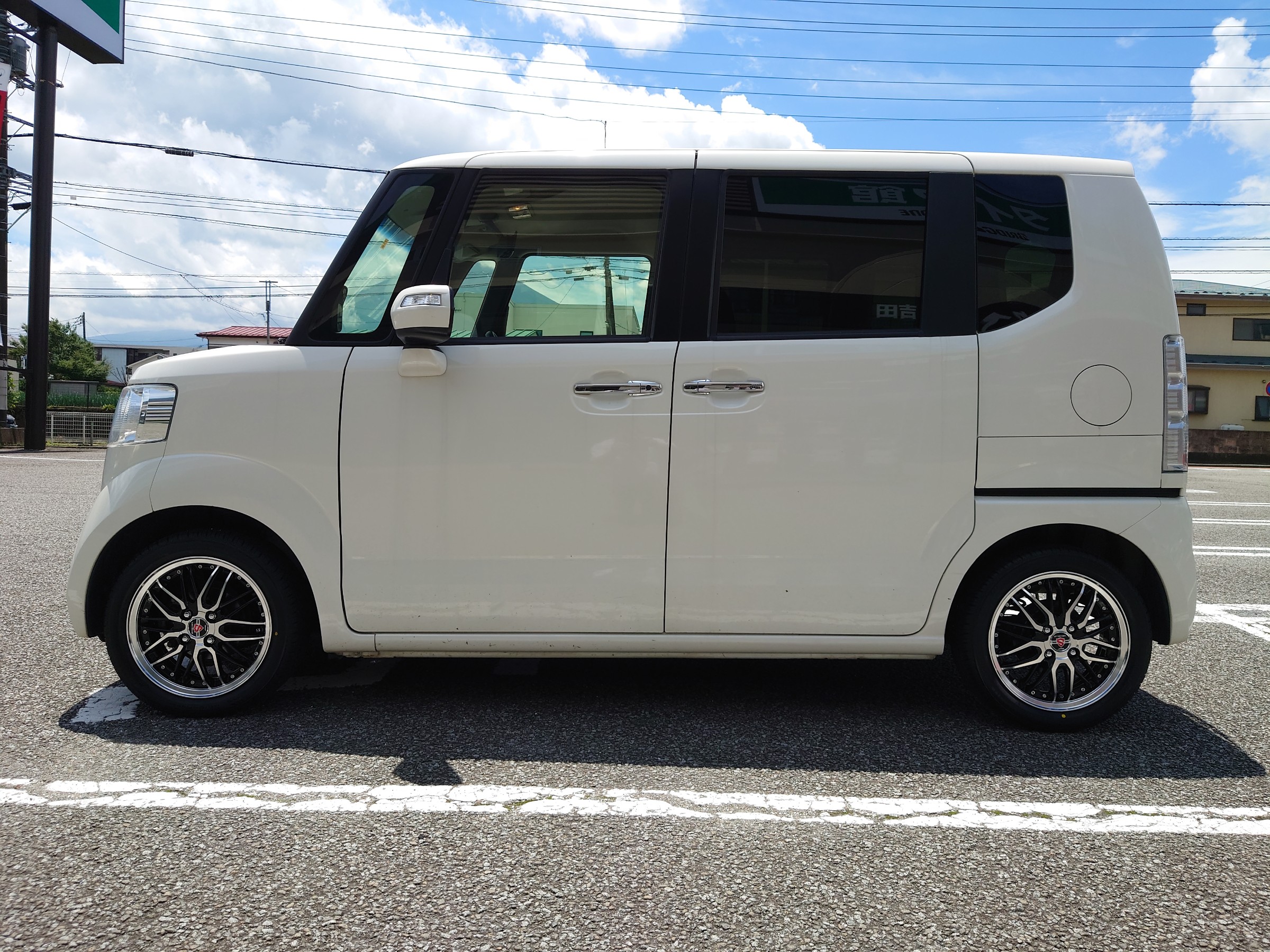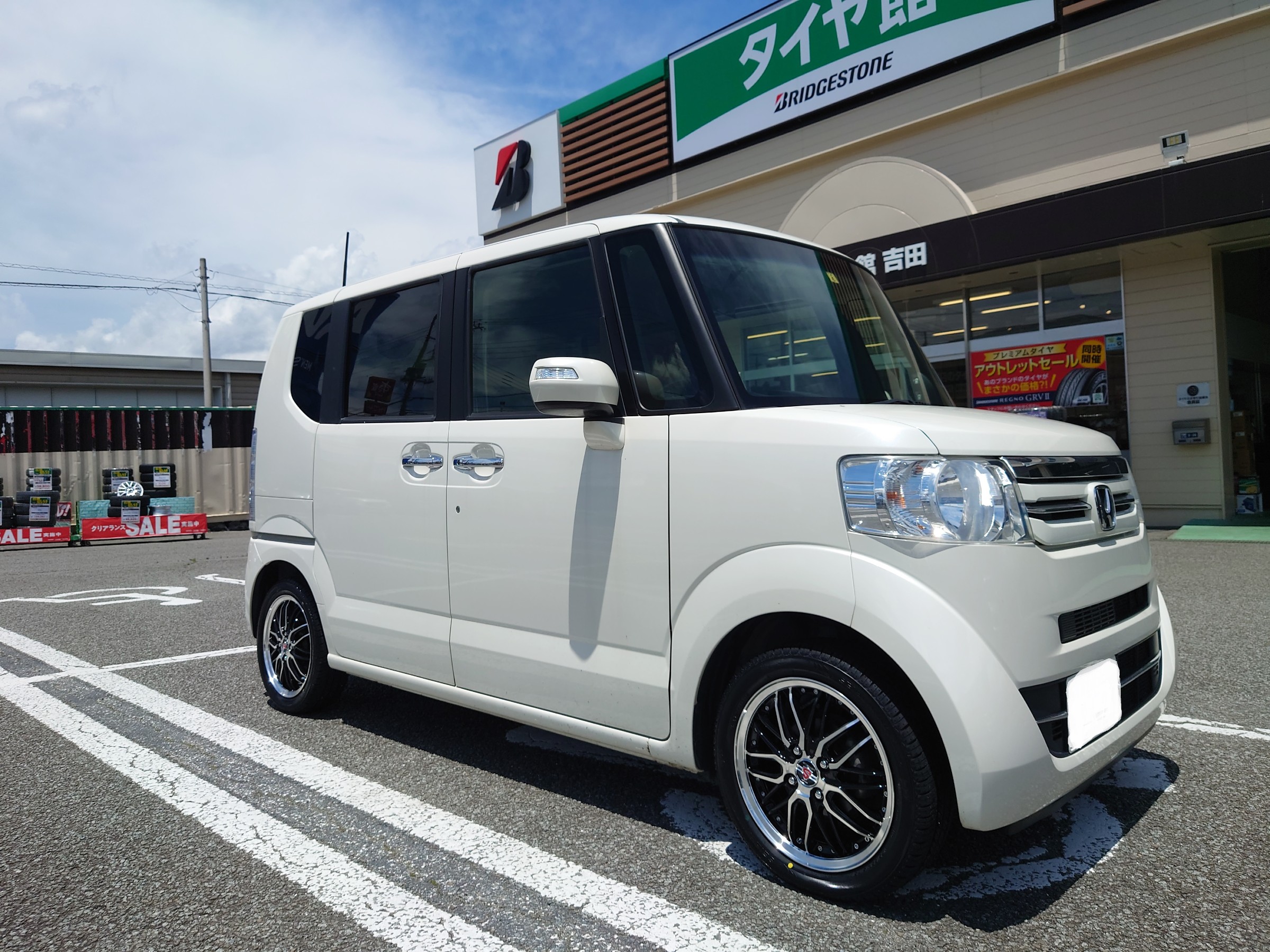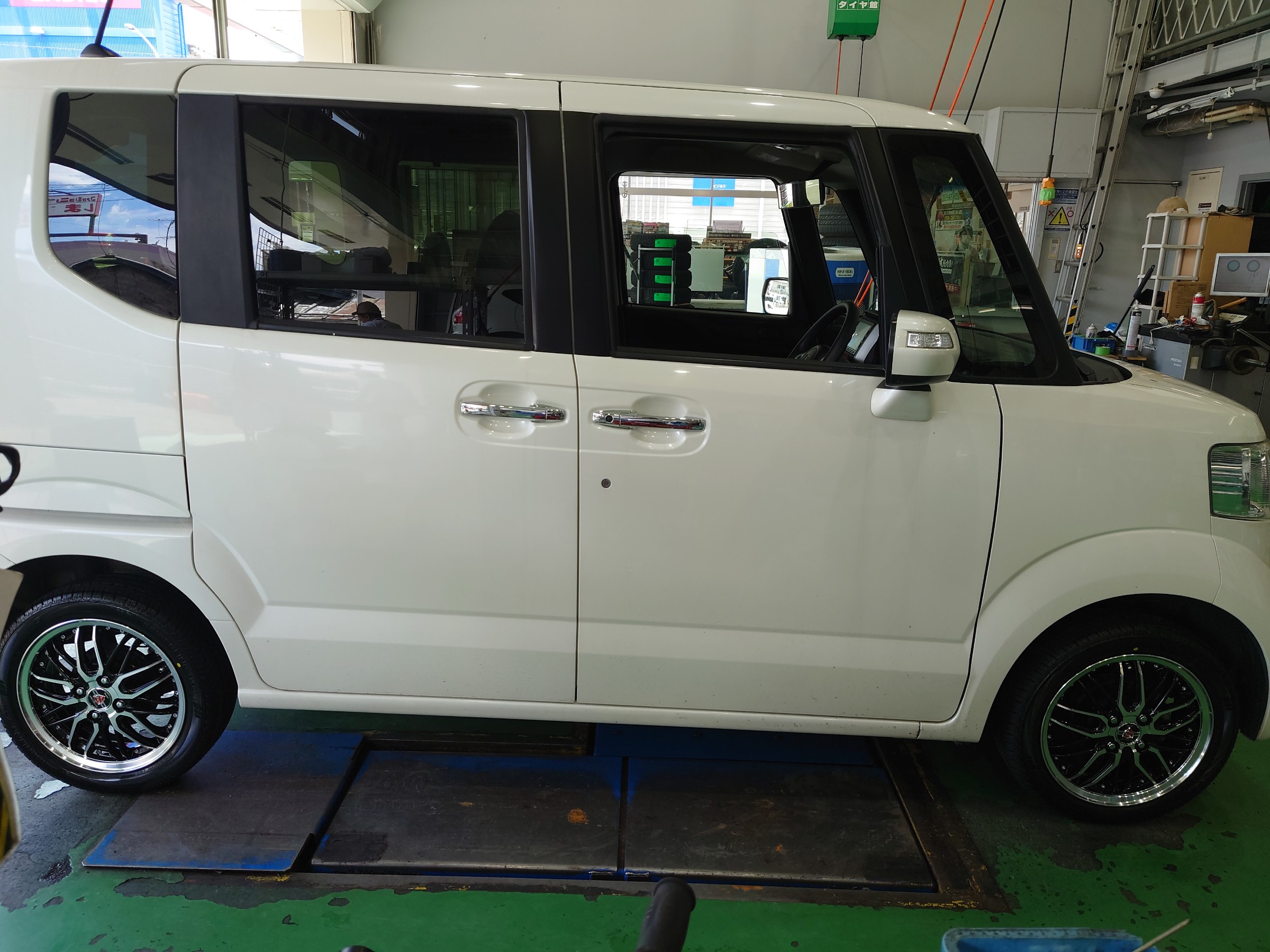 本日は、N-BOXにお乗りのお客様より、新しいタイヤと、ホイールの交換をご依頼いただきましたのでご紹介します(^^)/