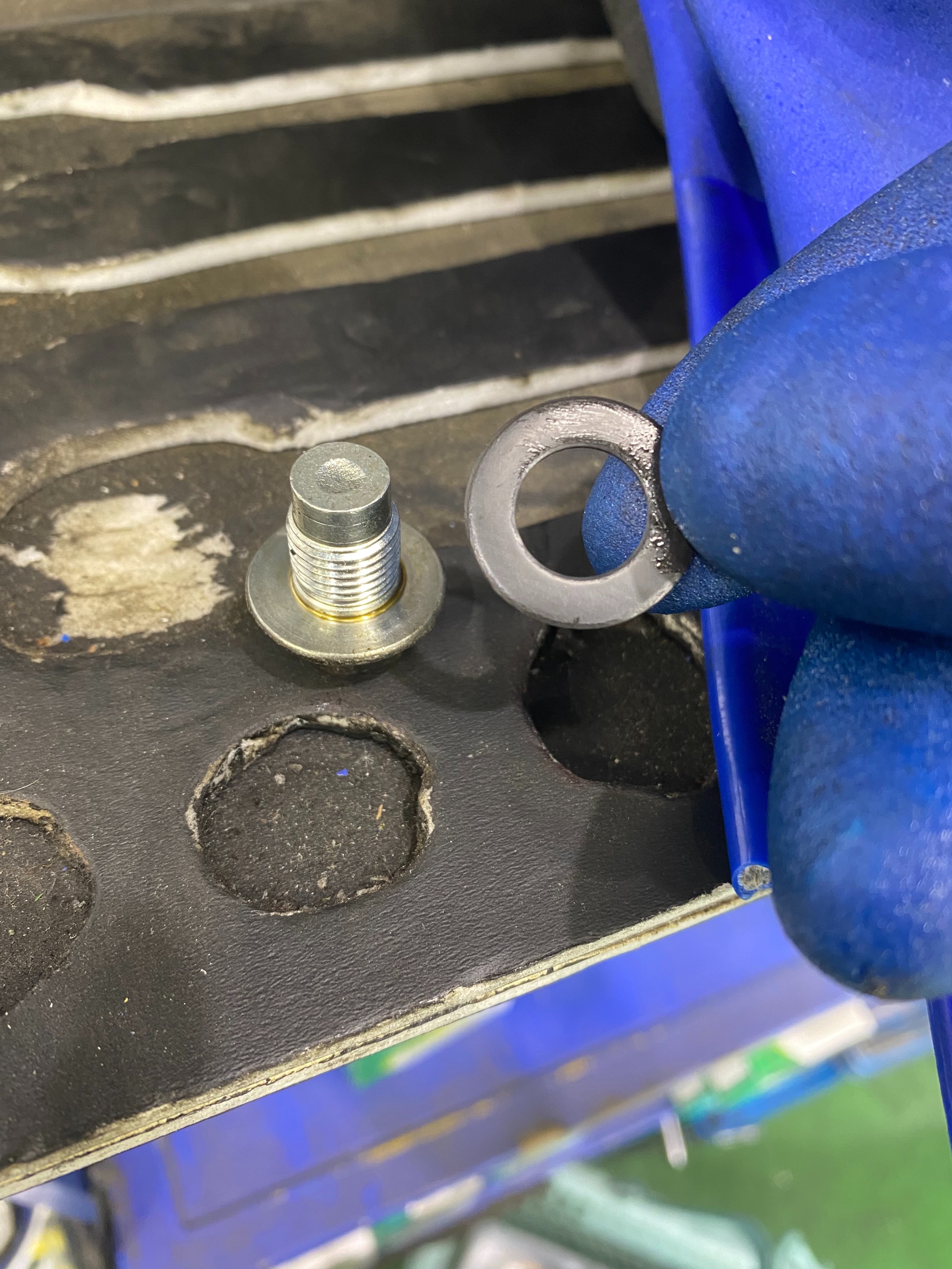 ドレンボルトのパッキンは使い回さず、新品に交換します(当然ですね!)