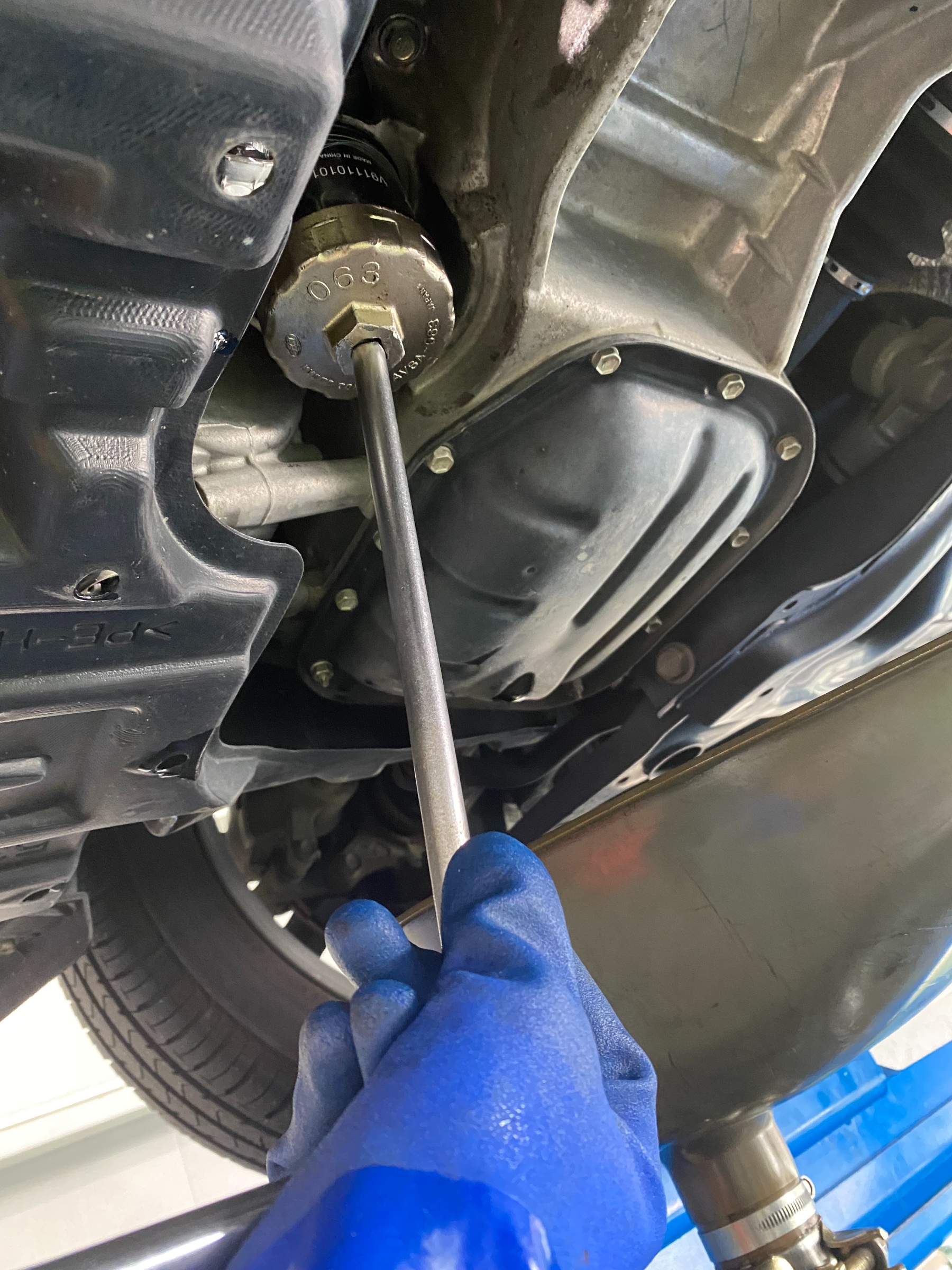今回はエレメント交換も行うため、下抜きでの実施です。