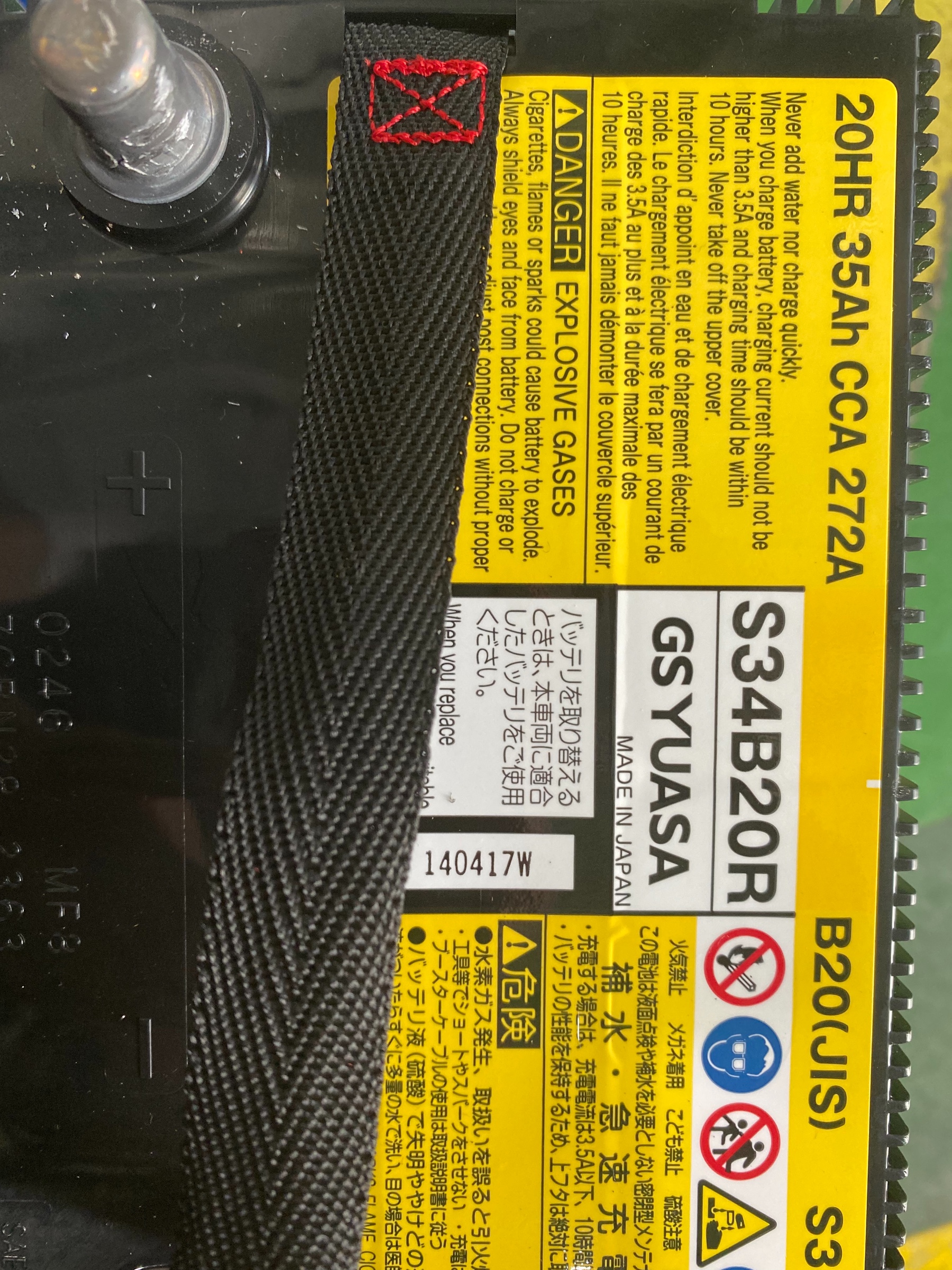 使用するのは、純正採用もされているGSユアサのハイブリッド車用のバッテリーです。