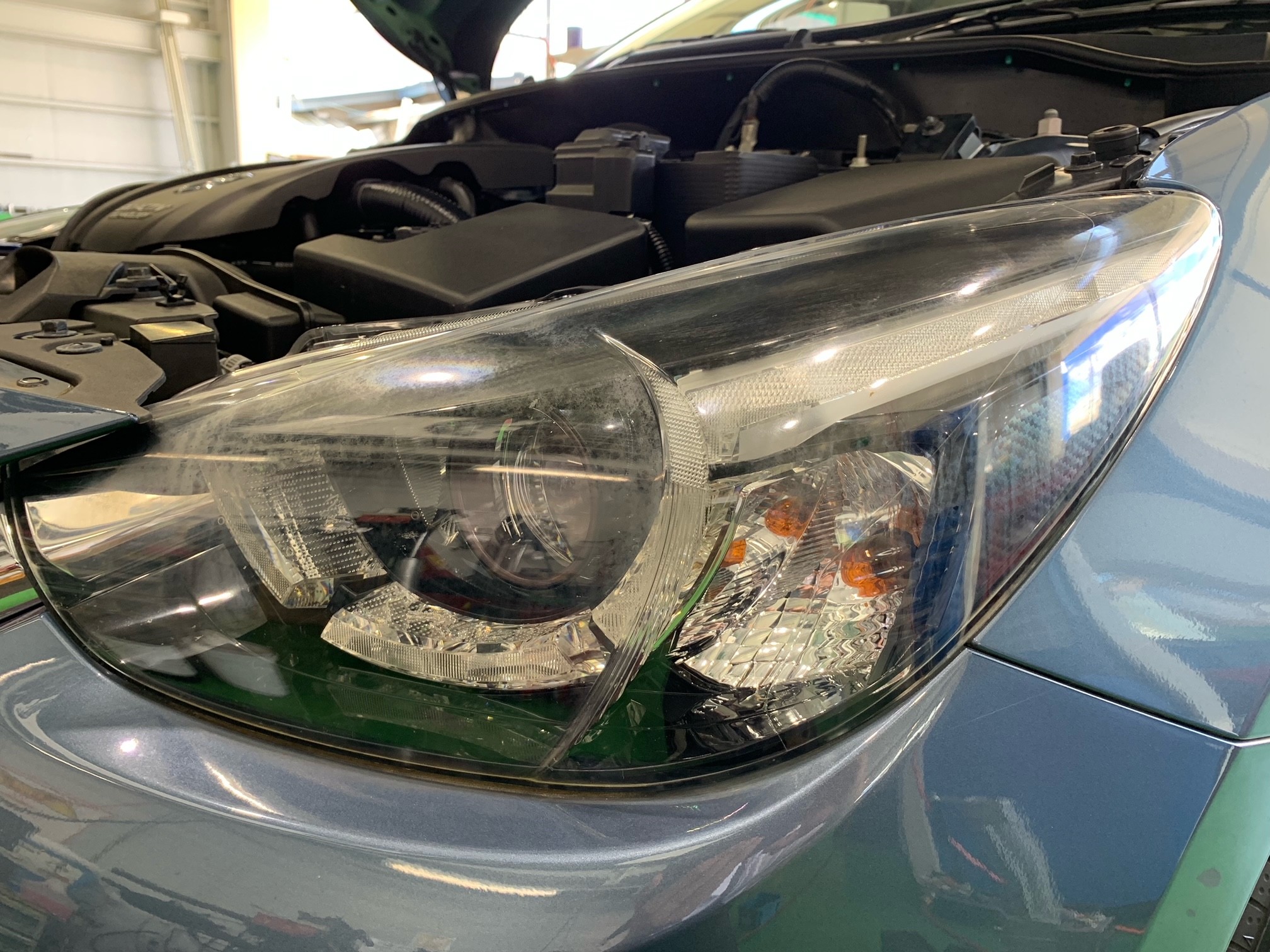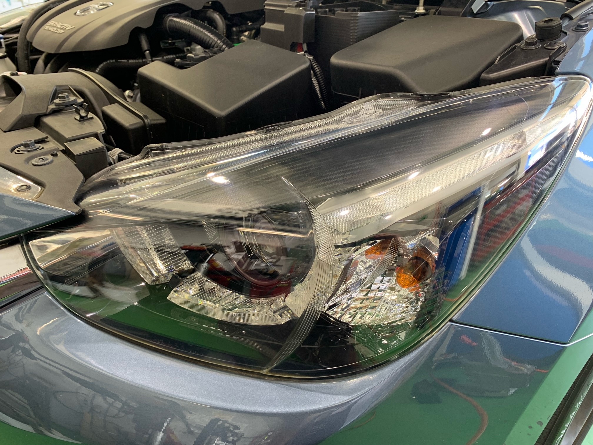 ↓ 履き替え後のデミオ。一見ヘッドライトに曇りなどありませんが、、、