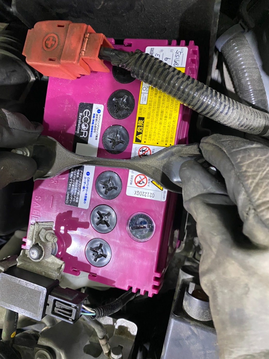 そして、アライメント調整後の安全点検でバッテリーの不良が判明しましたので交換となりました。