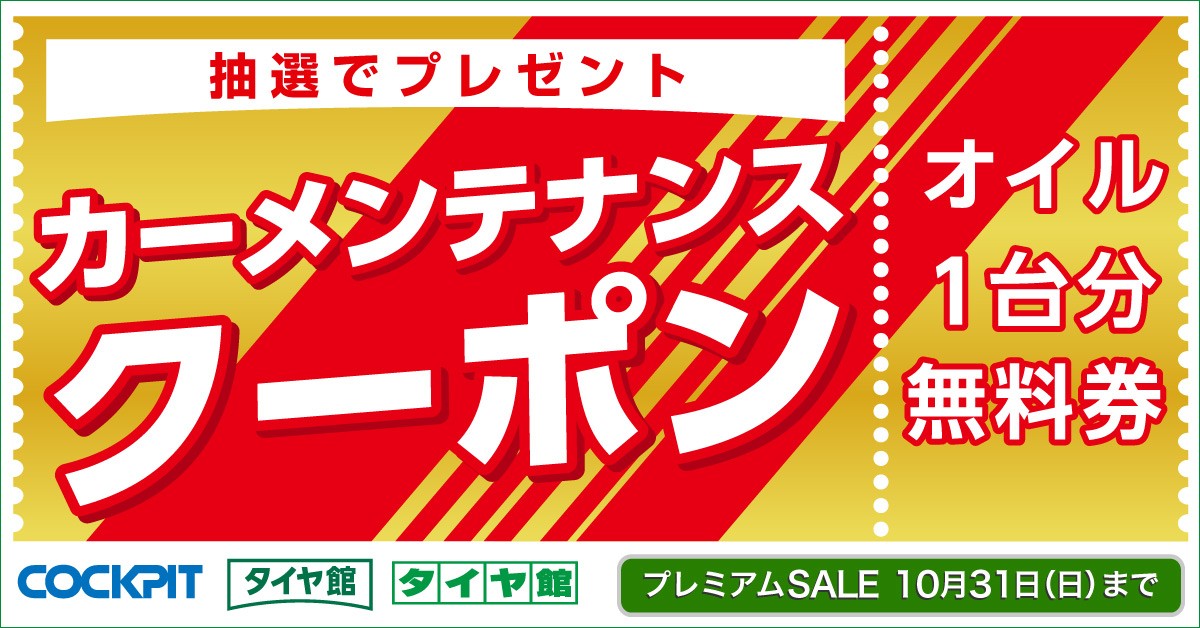 アプリからご応募いただくと1等(最大1万円引き)のクーポンが必ず当たる!ぜひコクピットアプリまたはタイヤ館アプリをダウンロードして、アプリトップのキャンペーンバナーよりご応募ください。