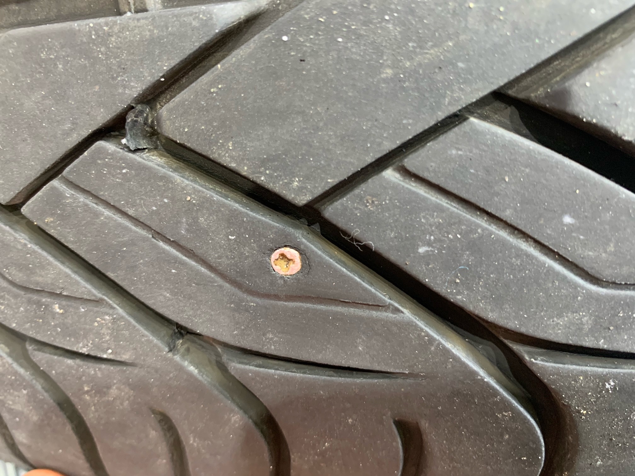 ↓ こちらの小さな釘が原因でパンクしました。早期発見できれば修理できましたが・・・。