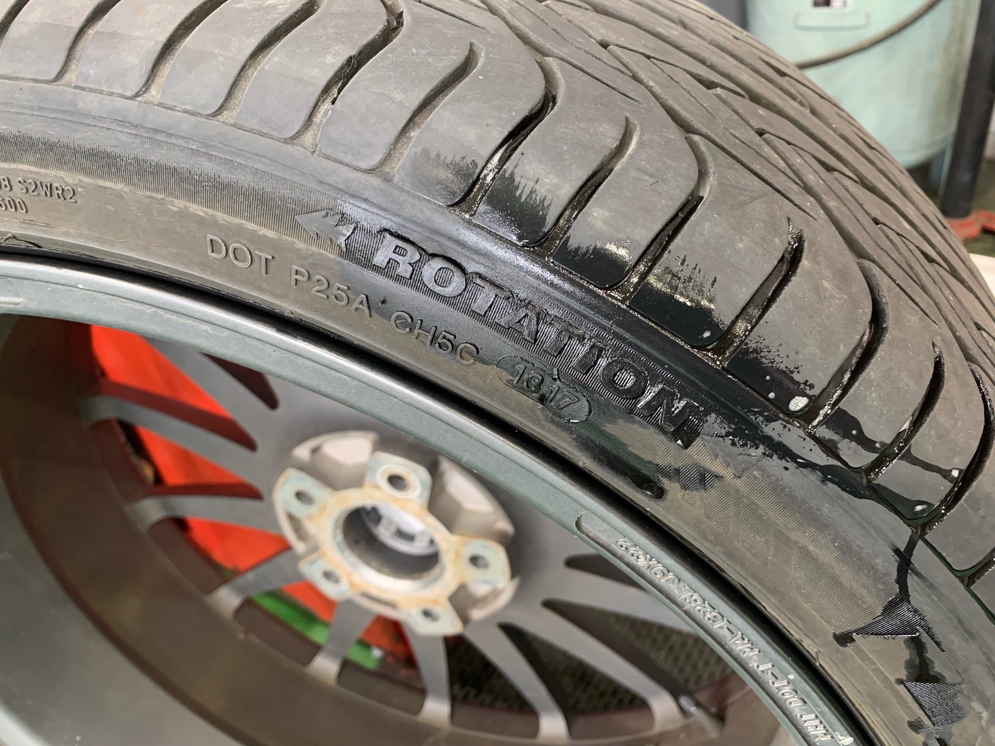 ↓ ぺしゃんこの状態で走った痕跡があり、サイドウォールを傷つけてしまいました。エアも漏れてます。^^;