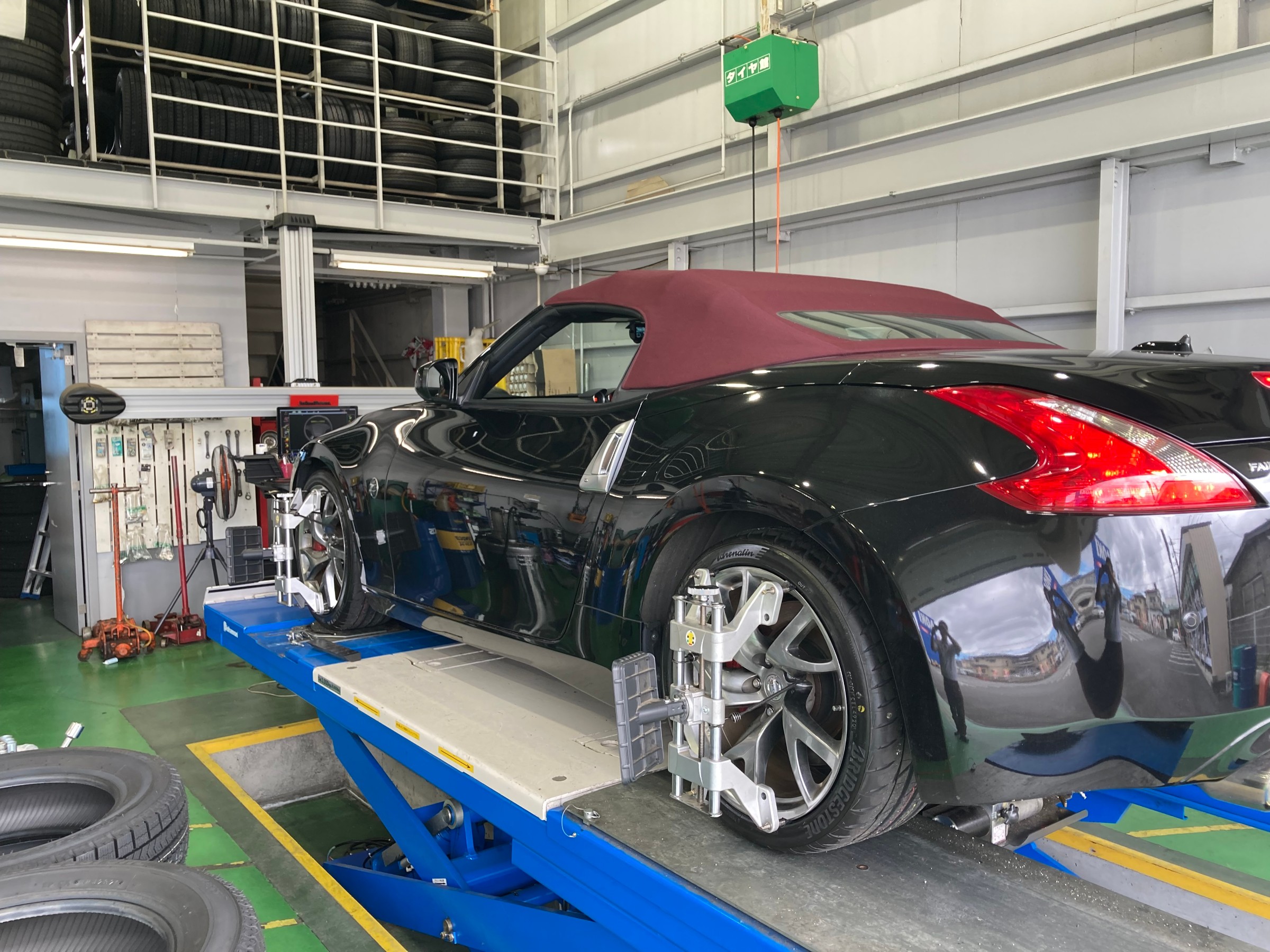 本日は日産 フェアレディZ Z34型のアライメント調整作業です。