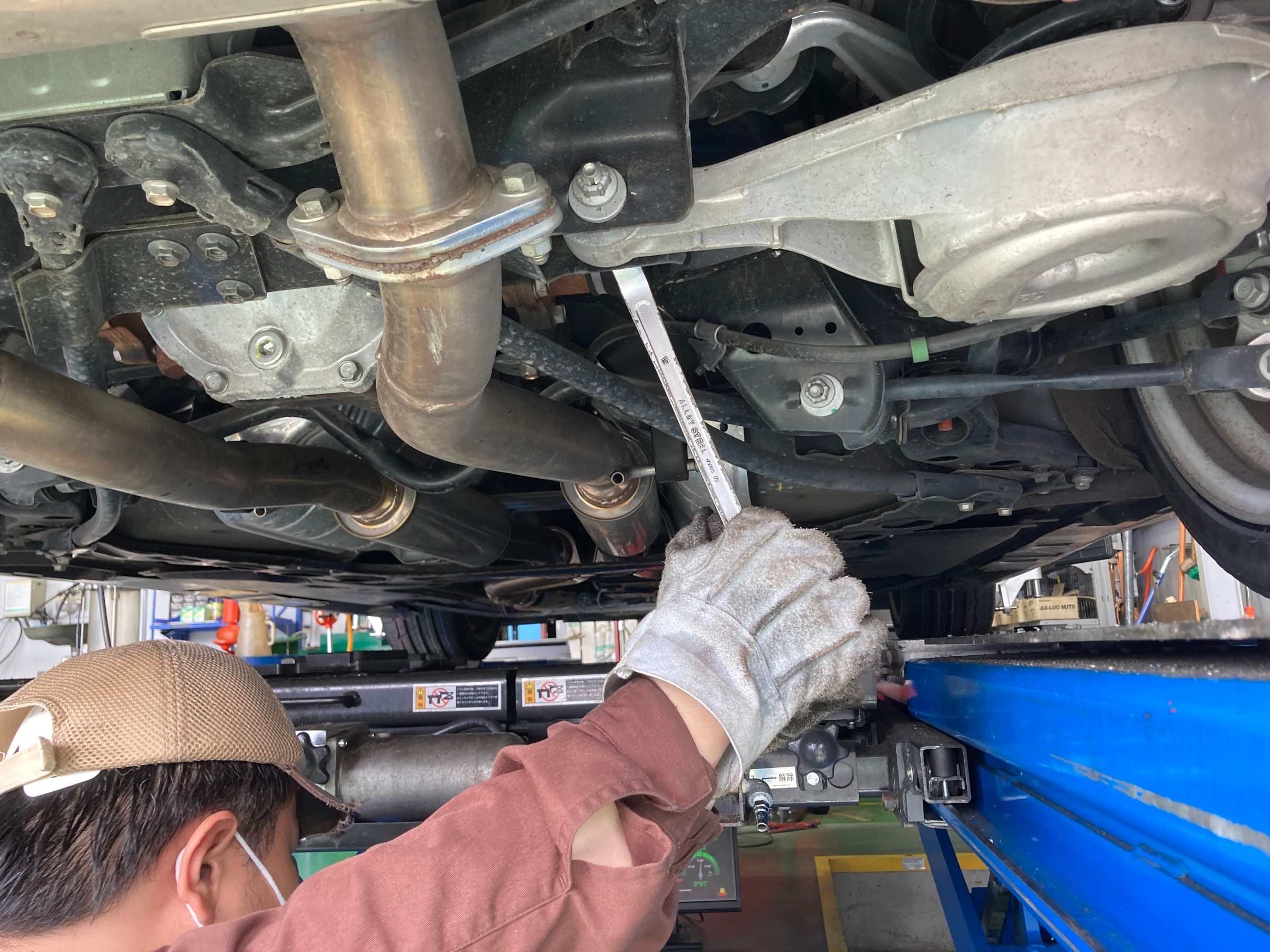 なかなか車両の下側を確認する機会はないと思いますが工具が入っている場所の偏心カムで調整していきます。