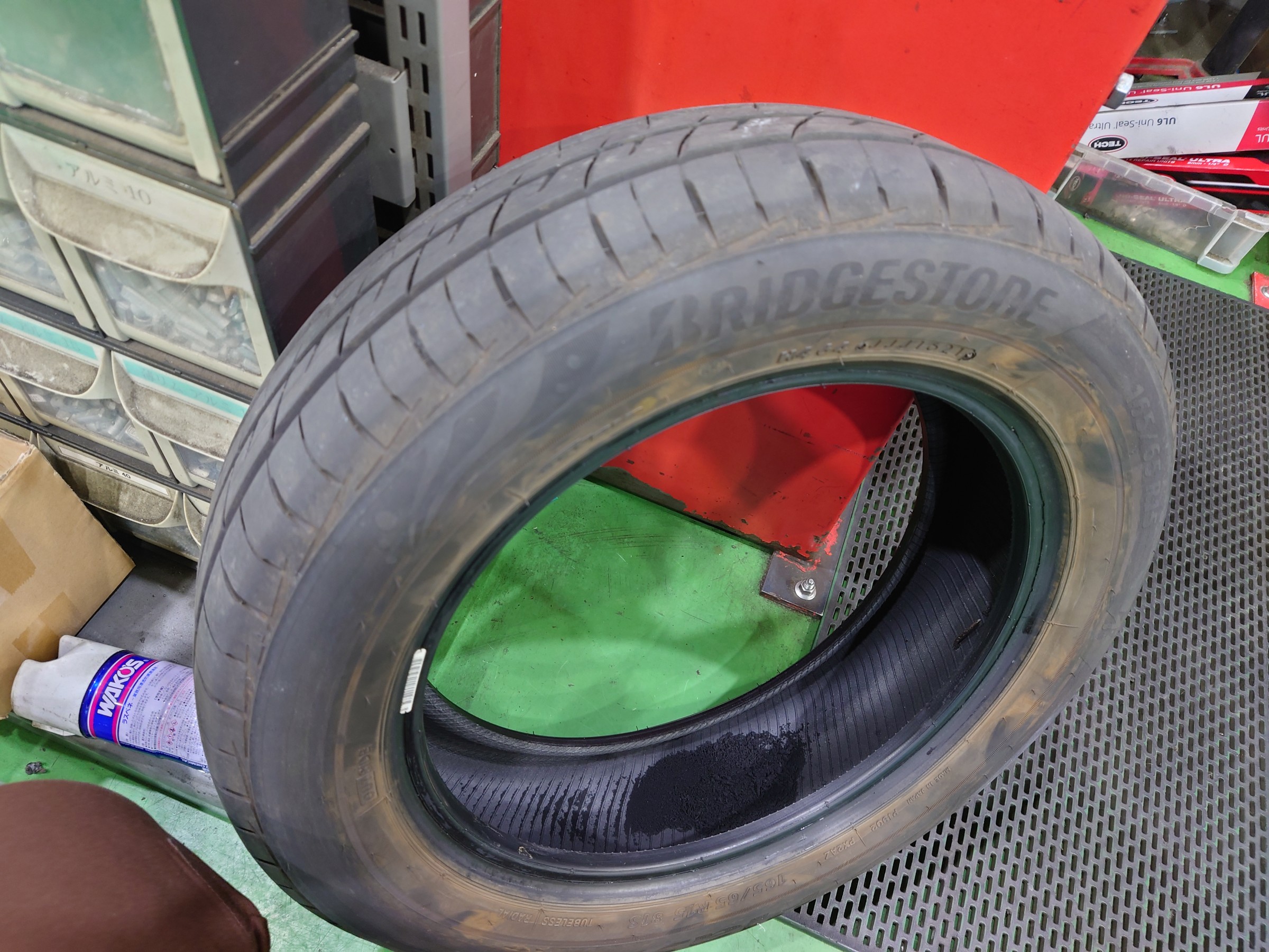 タイヤが1本パンクしてしまったとの事でタイヤを外して点検してみると・・・