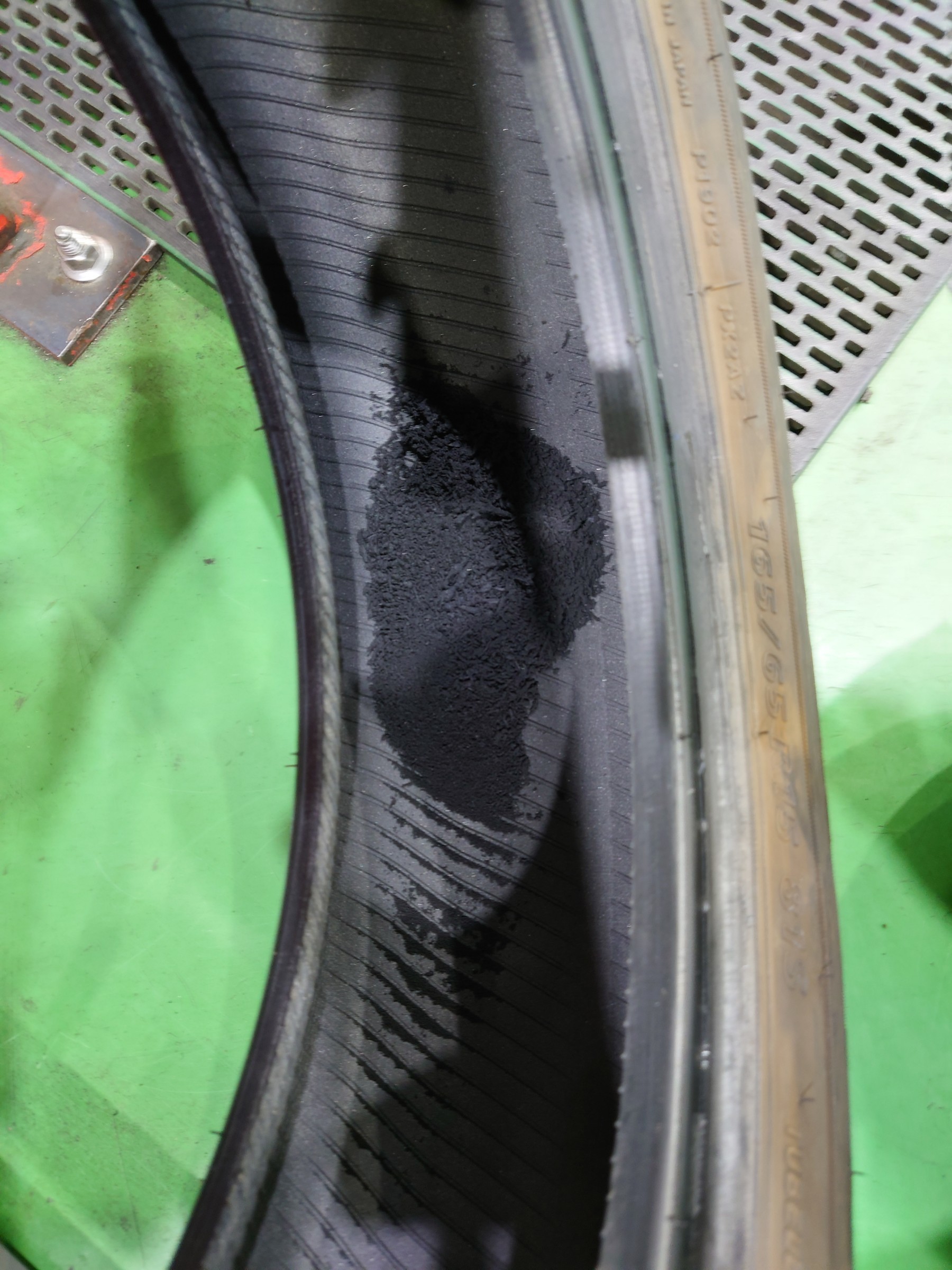 パンクに気がつかない内に走ってしまった為、タイヤが車の走る負荷に耐え切れず削れてしまっています。