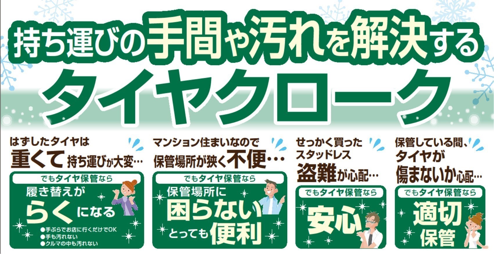 タイヤ保管サービス取扱いしています! ポスト 2021年12月5日 当店ではタイヤの保管サービスを 取扱いしております! ※自宅にタイヤを保管するスペースがない ※タイヤの盗難に合わないか心配・・・ ※毎回タイヤを持ち運びするのが重くって大変 ※マンションに住んでる などなど。。。 保管にお困りの方はタイヤ館の保管サービスをご利用下さい。 大きな倉庫へお預かりしておりますので、保管状態も良く1本1本タイヤを梱包させて頂いてます。 ※1年間契約でのお預かりとなります。 タイヤの履き替え料金は別途掛かります。 カテゴリ:お知らせ