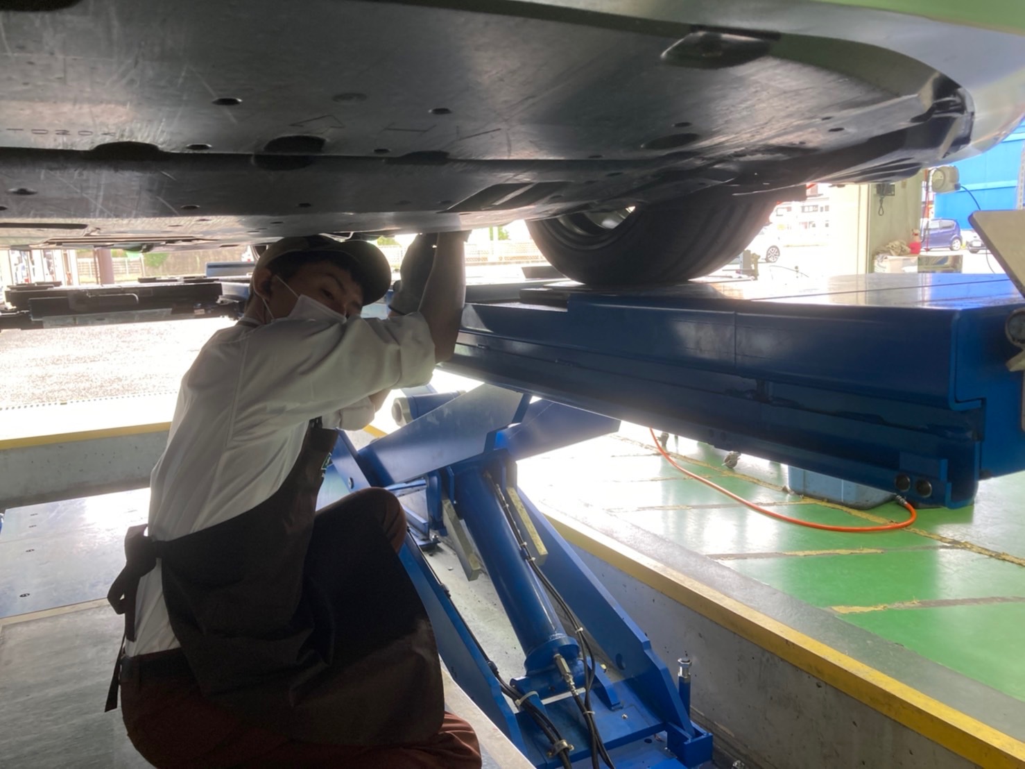 走行距離が多いとのことでしたので、アライメントもズレているだろうとのことで調整となりました。