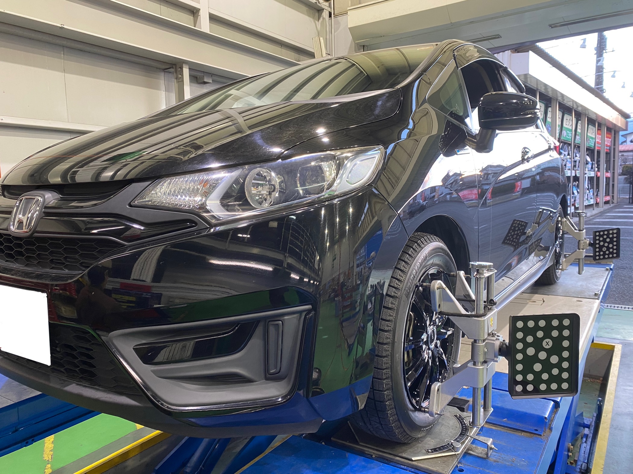 ホンダ・フィットのスタッドレスホイールセット+アライメント調整を実施しました。
