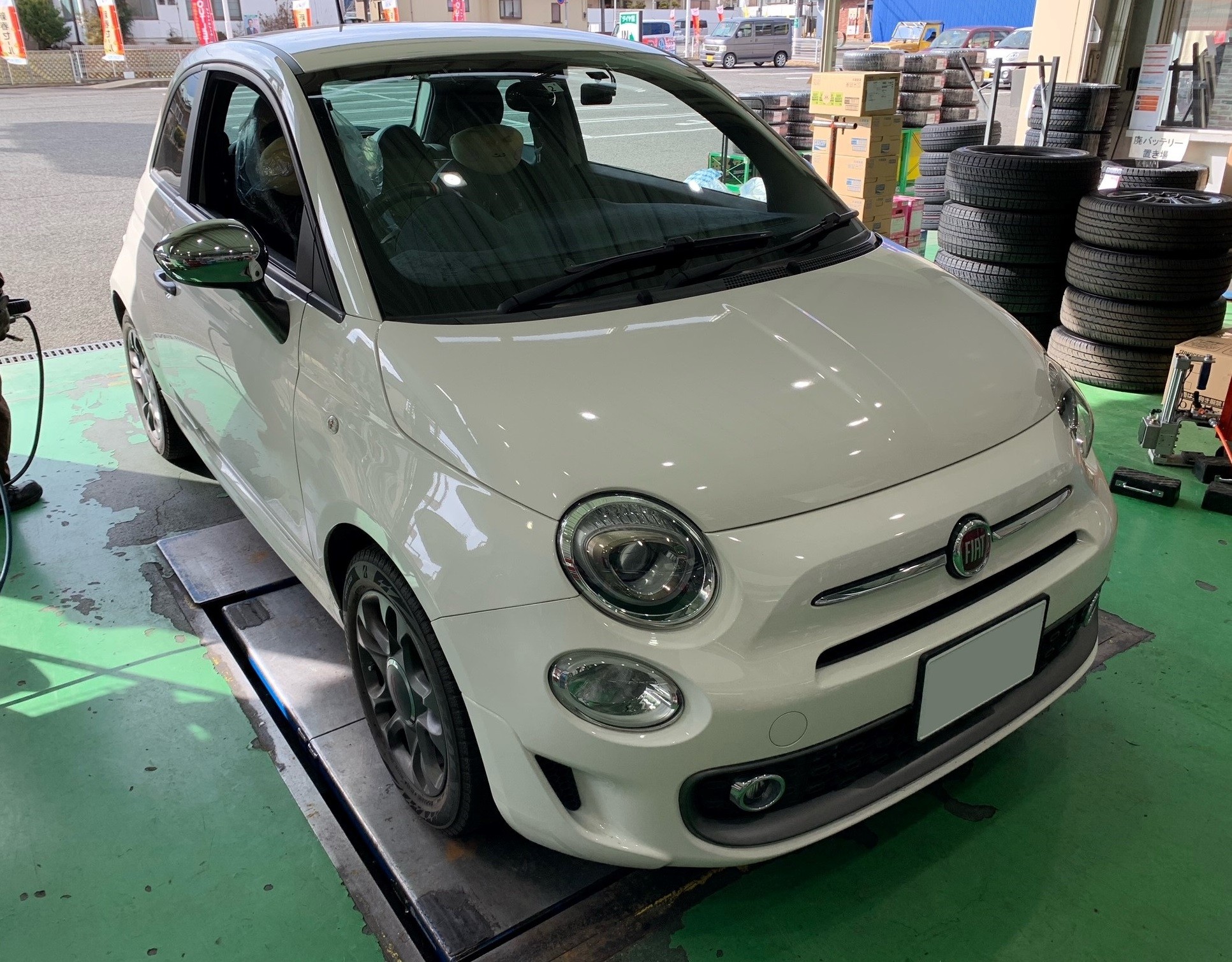 ↓ 新品の冬タイヤを装着し、100㎞点検でご来店頂いたフィアット。