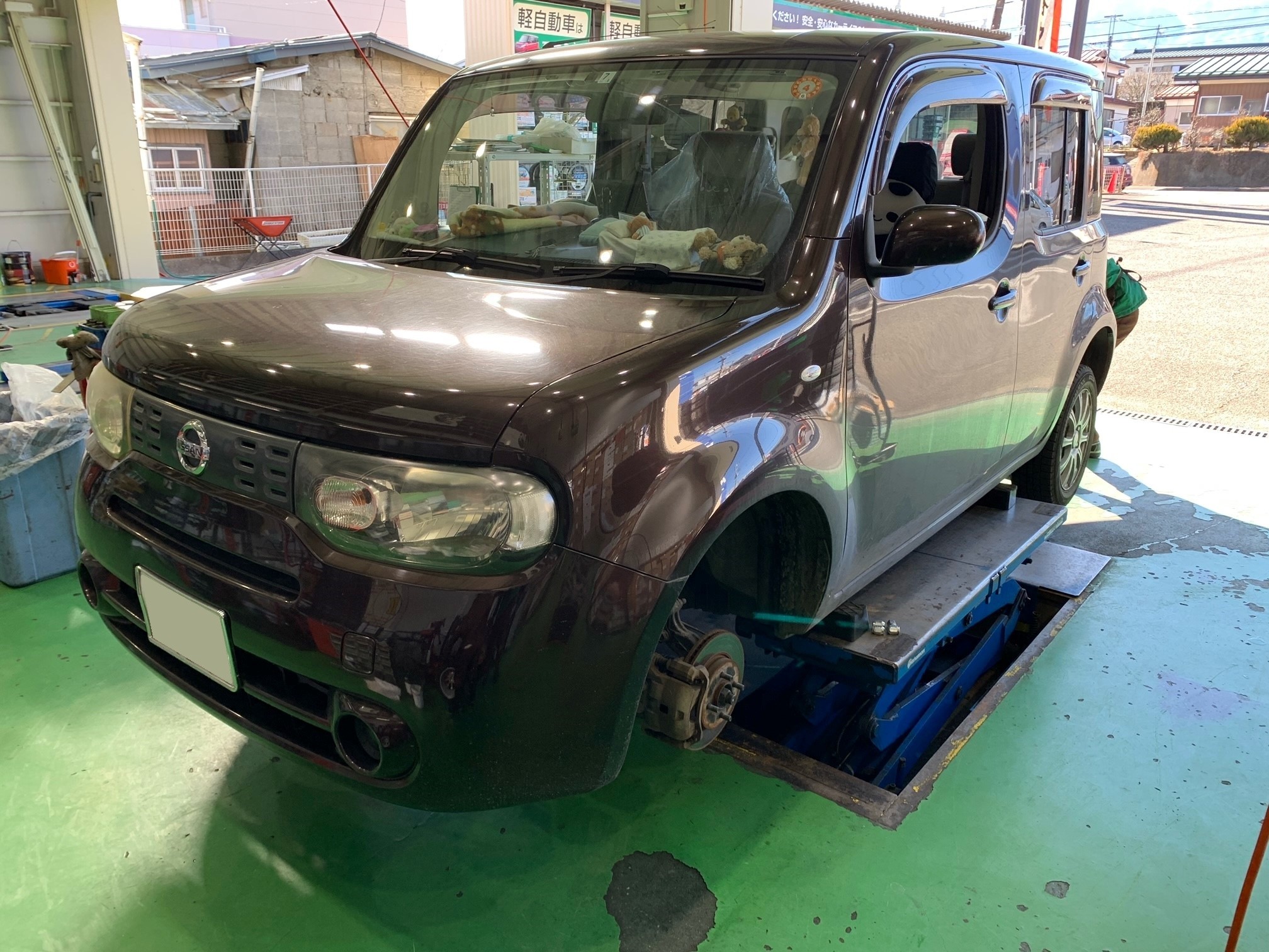 ↓ 左前のタイヤがパンクしており、スペアタイヤでのご来店です。