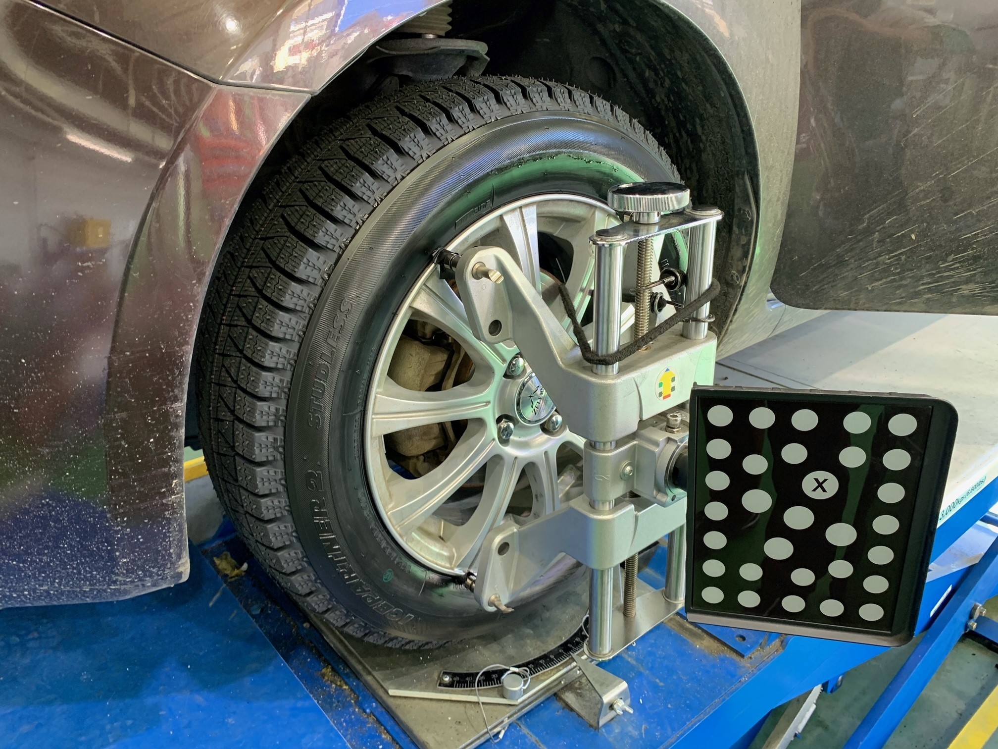 ↓ 今回はぺしゃんこの状態で走行したという事もあり、しっかりアライメント調整も行いました。