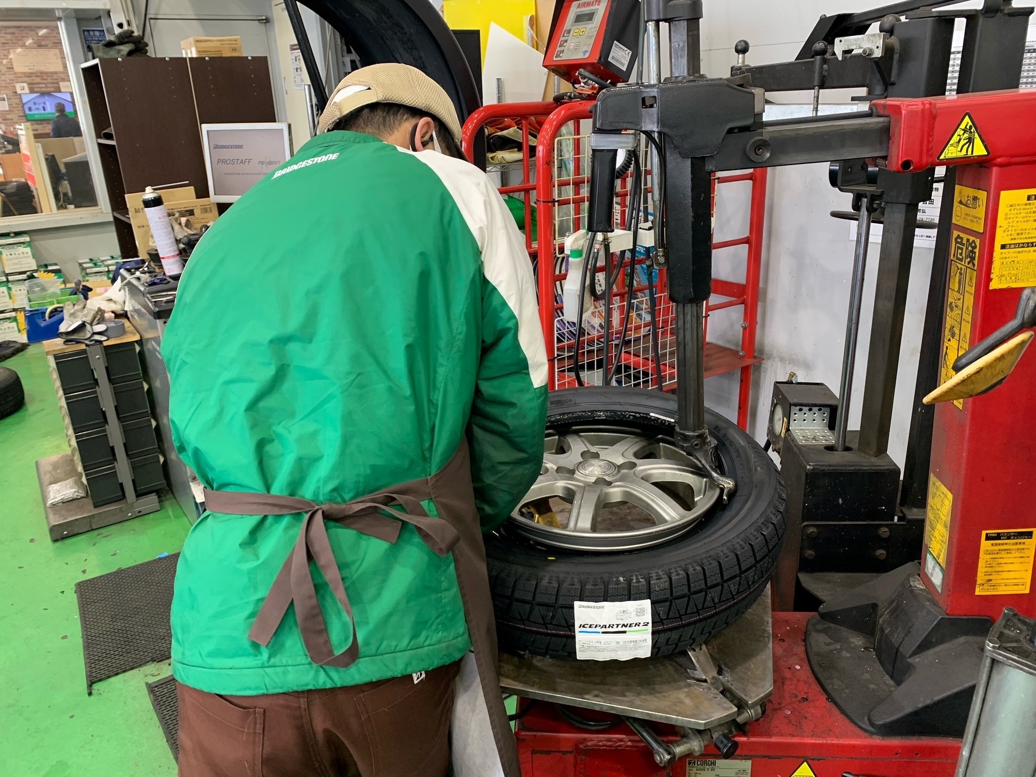 ↓ タイヤ交換は渡邊スタッフが担当致しました。