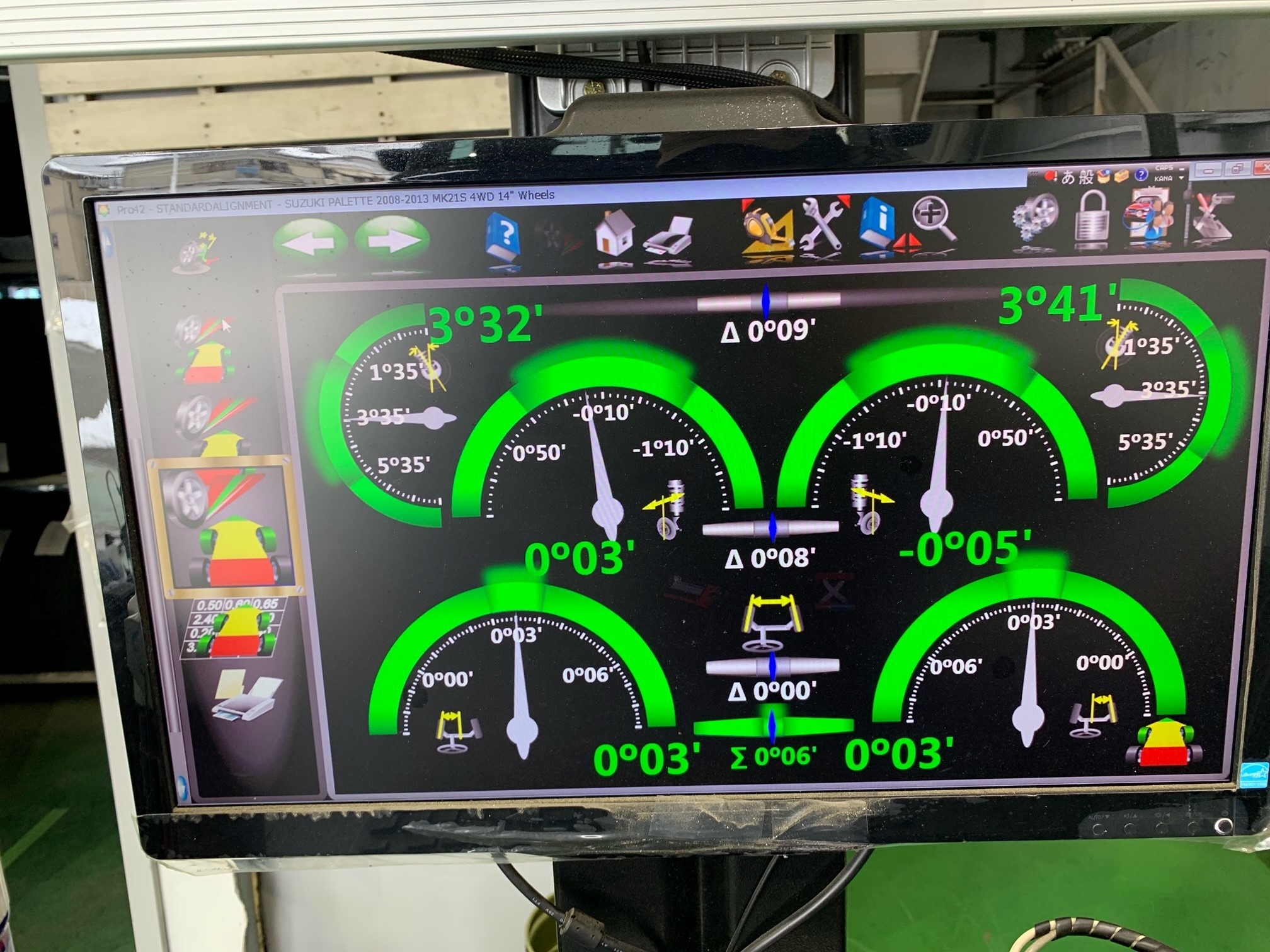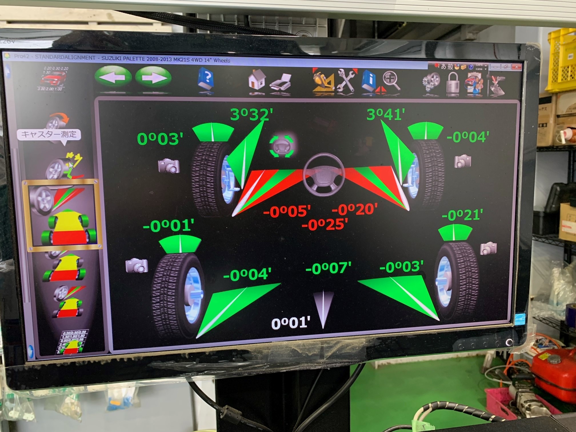 ↓ タイヤ交換をした後はアライメント調整です。