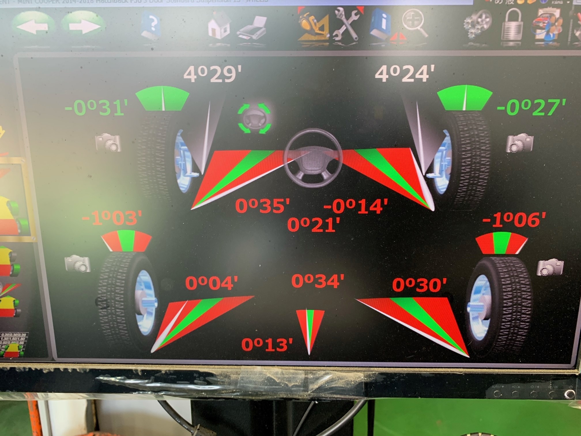 ミニのアライメント調整! ポスト 2022年2月18日 本日ご紹介する作業はMINIのアライメント作業です! ↓ 事故で足回りのパーツを交換したとの事でご来店でした。 ↓ かなり歪んでますね。フロントタイヤは進行方向右に、リアタイヤは進行方向左に進もうとしていますです。 こちらを前後しっかり調整してお客様にお戻ししました。^^ 当店では輸入車のアライメント調整も受け付けております。 お悩みの際は是非当店をご利用下さい。 本日も沢山のご来店ありがとうございました! 担当:三井