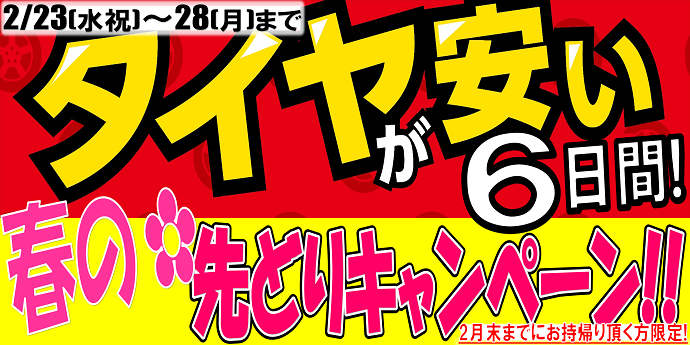 『タイヤが安い6日間!春の先取りキャンペーン』開催!