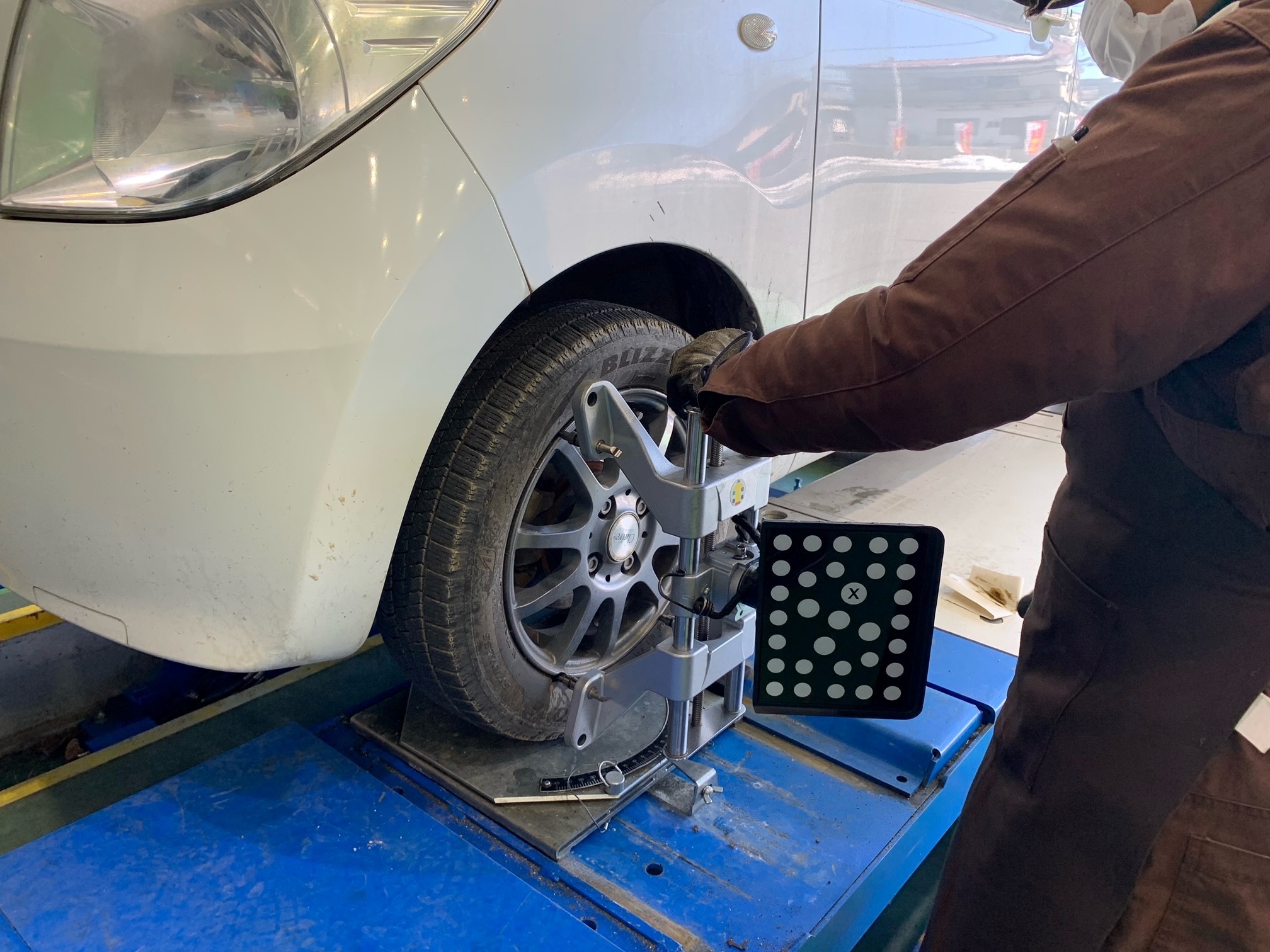 本日ご紹介する作業はスズキ パレットの夏タイヤ交換とアライメント調整です!