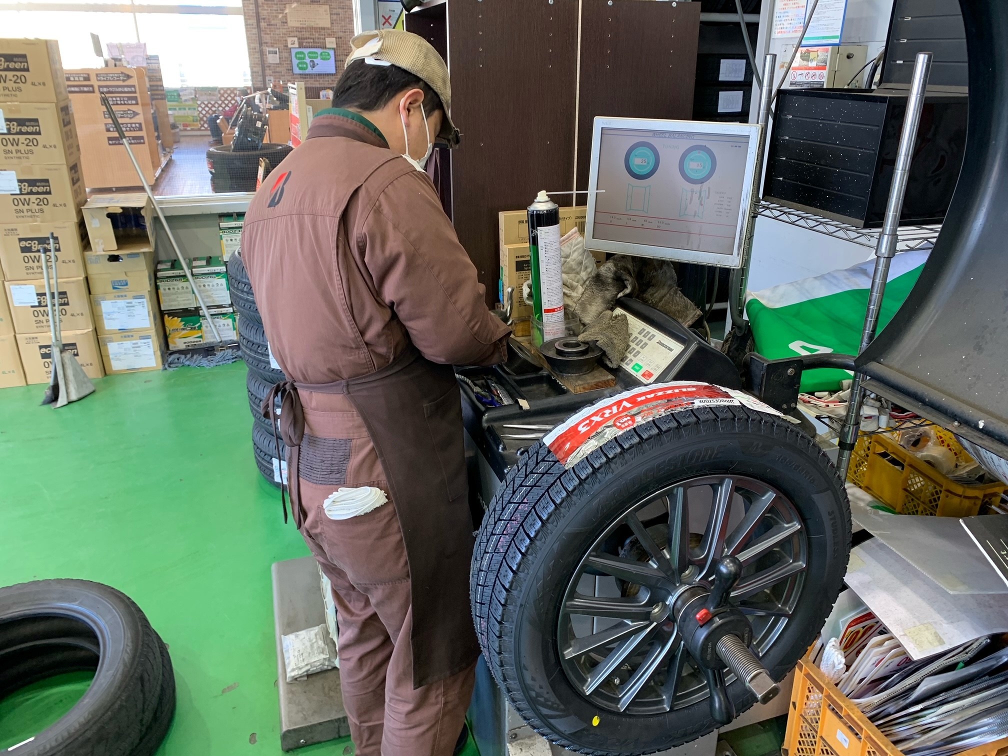 ↓ タイヤ交換は刑部スタッフが担当 ホイールバランスを確認しております。