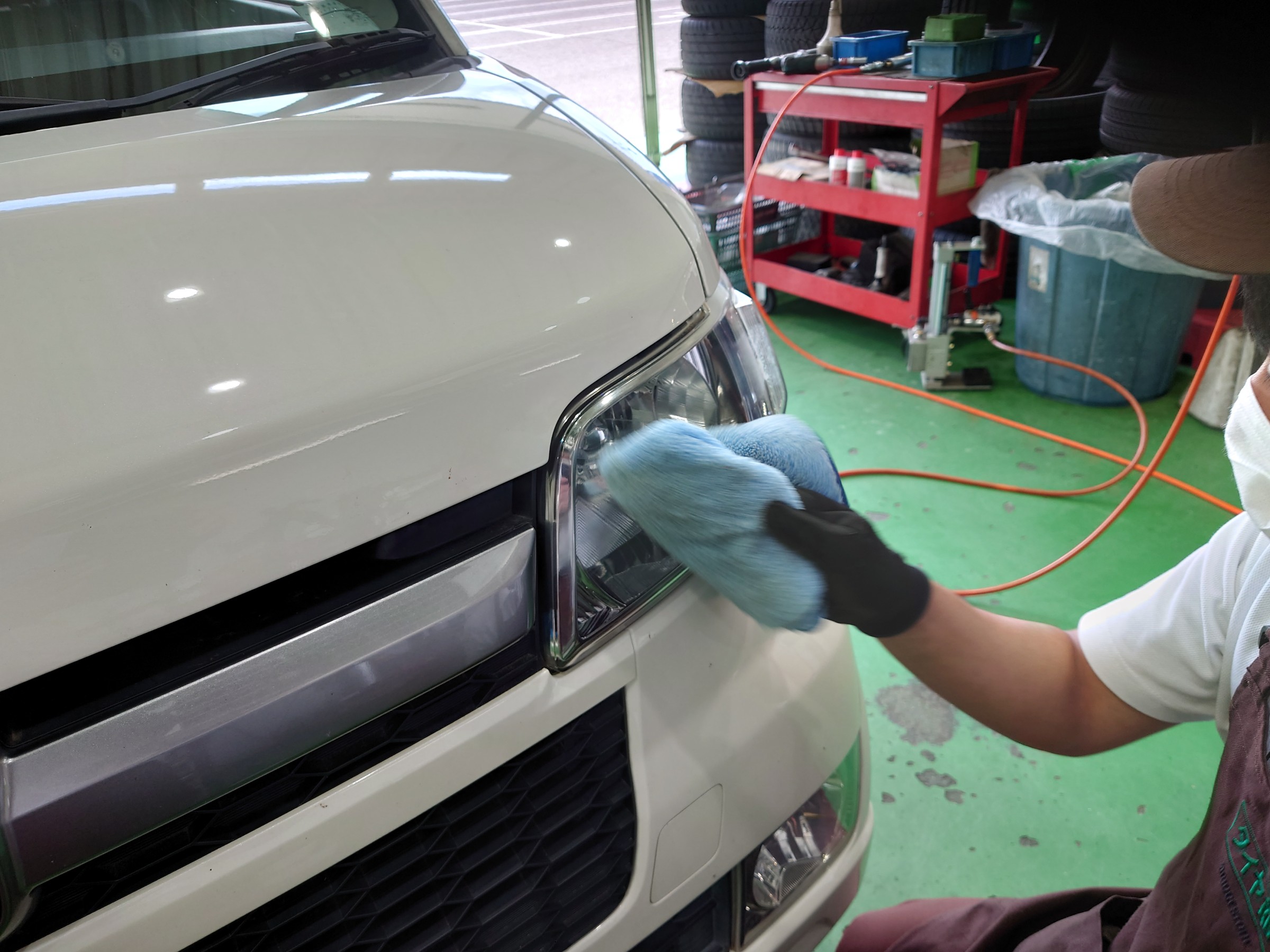 今回作業させていただいたゼストは、あまりヘッドライトにダメージが無かったのでコーティング剤の塗布及び仕上げで済みましたが、くすみが出てきてるお車の場合にはポリッシャー(機械)を使い磨いて作業を行います。(劣化が酷く進行している場合やヘッドライト内部の劣化の場合は効果が出にくい場合もございます。)